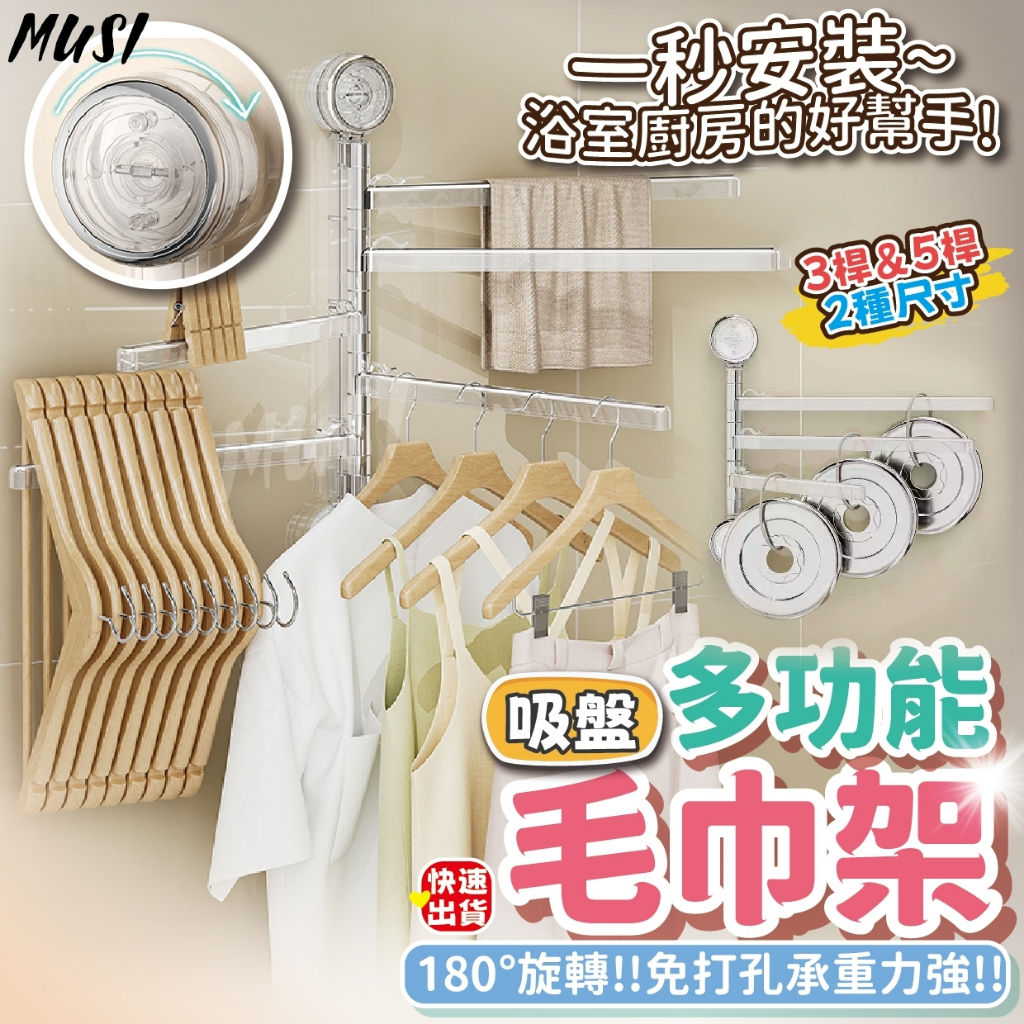 [隔日發貨]吸盤毛巾架 毛巾架 浴室毛巾架 一秒安裝 180度旋轉 毛巾桿 吸盤毛巾架 浴室掛架 浴室 廚房吸盤多功能毛巾架-透明3桿 現貨隔天發|吸盤多功能毛巾架-透明5桿 現貨隔天發Bathroom Racks & CabinetsMUSI 口罩&包包帽子 專賣