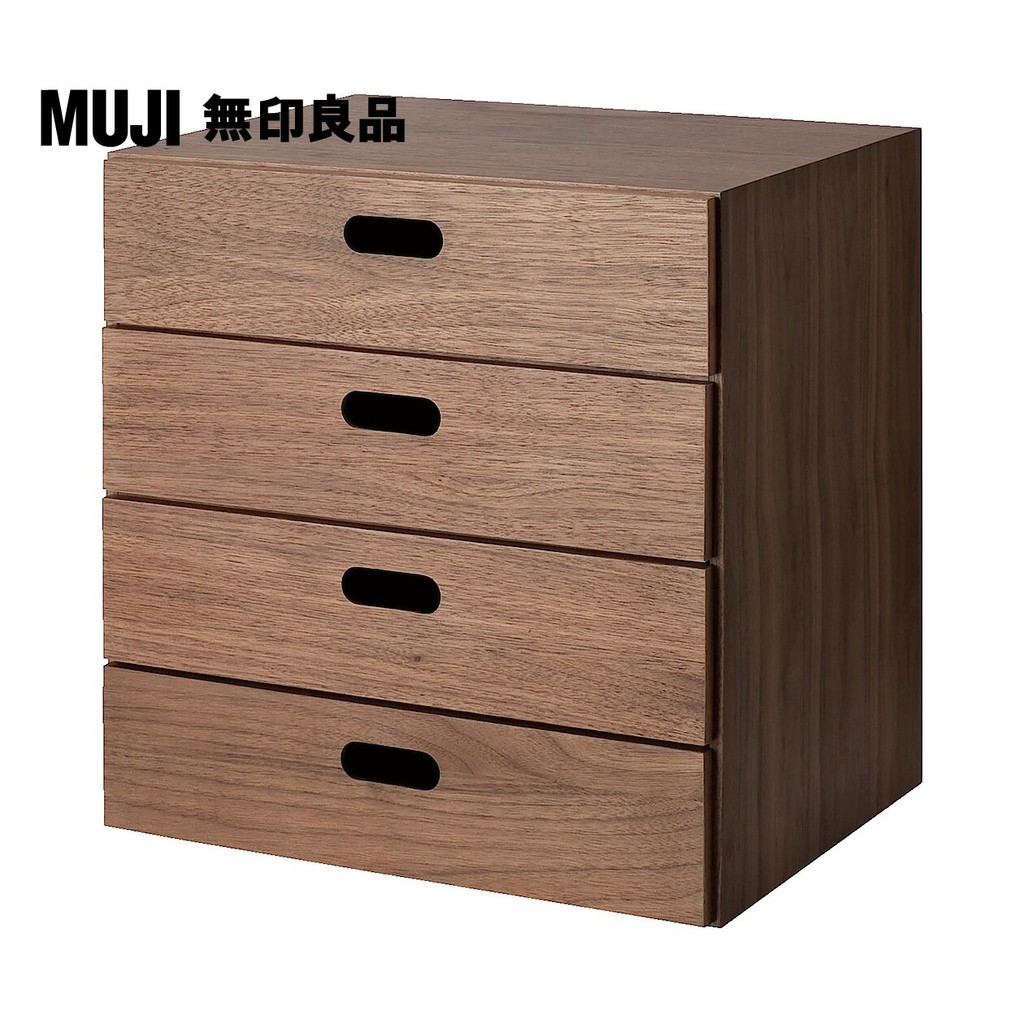 【MUJI 無印良品】胡桃木組合收納櫃/抽屜/4段(大型家具配送)
