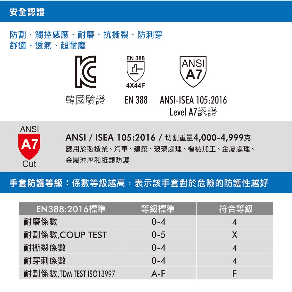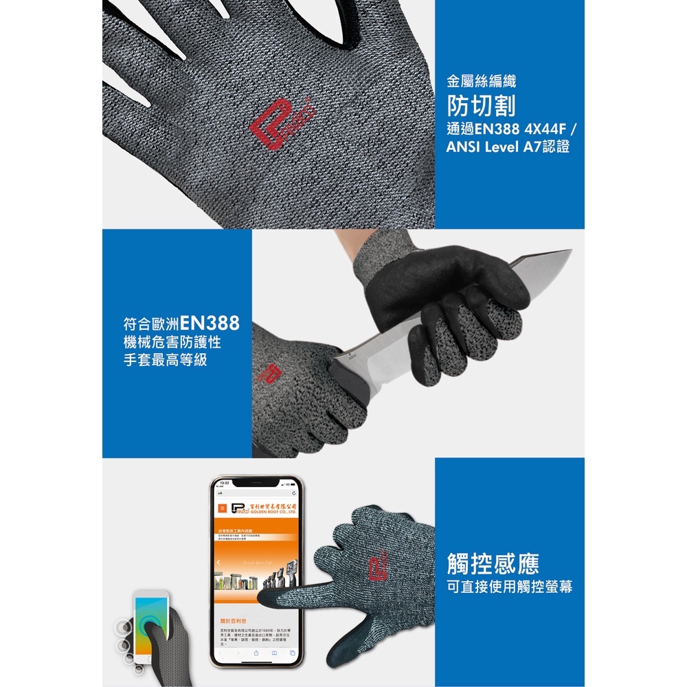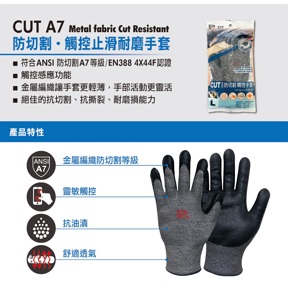 【Panrico 百利世】Cut A7防割防滑觸控手套 防割手套 防切割手套ANSI A7及EN388 防切割最高級M號|L號|XL號Protective Gloves, Goggles & MasksPanrico 百利世工具職人館