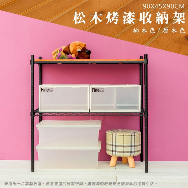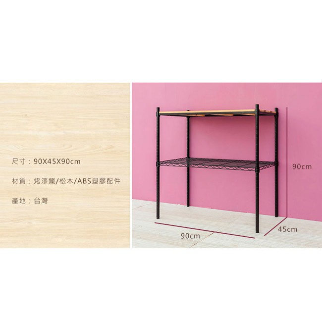 比架王 松木 90x45x90cm二層置物架(烤漆黑) /收納架/波浪架/置物架/鐵架原木色|柚木色Shelves & RacksParity 比架王居家生活館