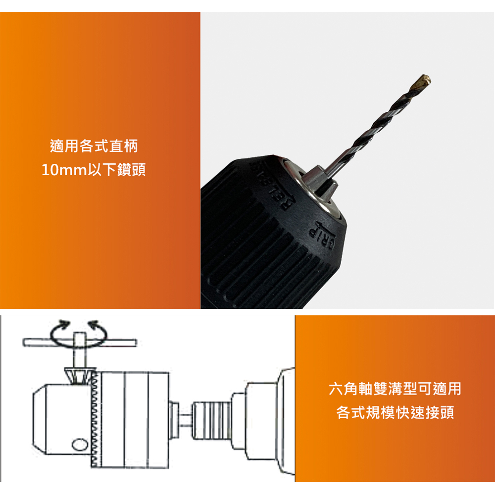 【Panrico 百利世】三分快速自動鎖定夾頭組附六角接桿 1.0-10mm衝擊起子機攻牙機轉電鑽 六角頭轉三爪夾頭【Panrico 百利世】三分快速自動鎖定夾頭組附六角接桿 1.0-10mm衝擊起子機攻牙機轉電鑽 六角頭轉三爪夾頭ToolsPanrico 百利世工具職人館