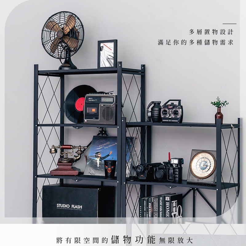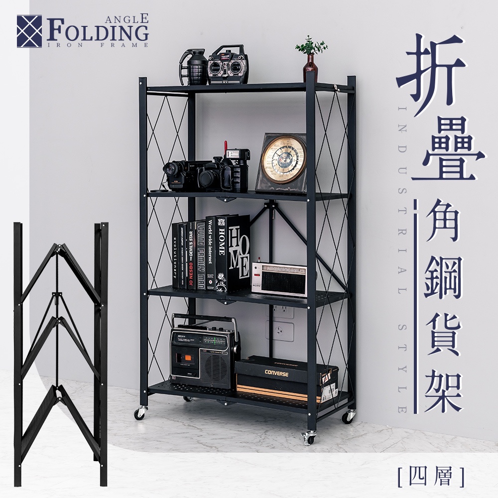 比架王 四層折疊角鋼貨架(兩色可選) 免螺絲 角鐵 耐重置物架 工業風層架 收納櫃 陳列架 鐵架 好收納 折疊 附滑輪黑色|白色Shelves & RacksParity 比架王居家生活館