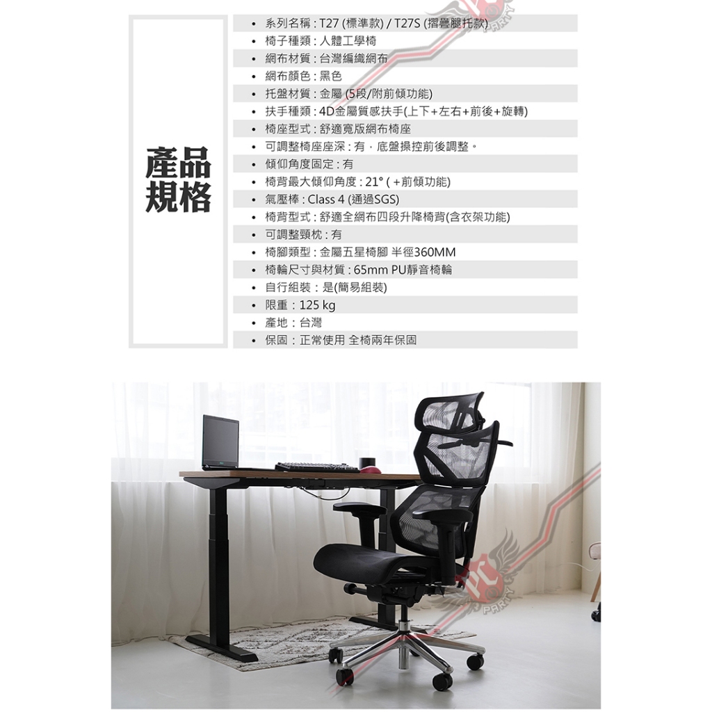 艾芮克 I-ROCKS T27 人體工學網椅 (無腳凳) PCPARTY黑色(無腳凳)|離島配送|灰色(無腳凳)Benches, Chairs & StoolsPC PARTY 電競週邊專家