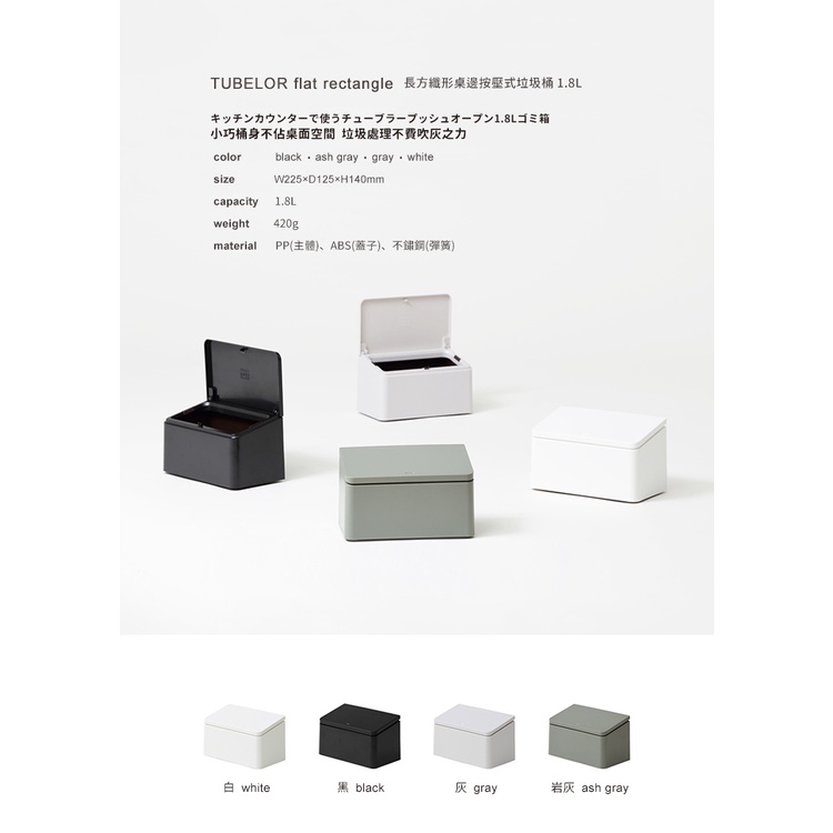 【日本ideaco】長方纖形桌邊按壓式垃圾桶-1.8L-4色可選黑|白|灰|岩灰Trash & Recycling Binsnicegoods 生活好東西