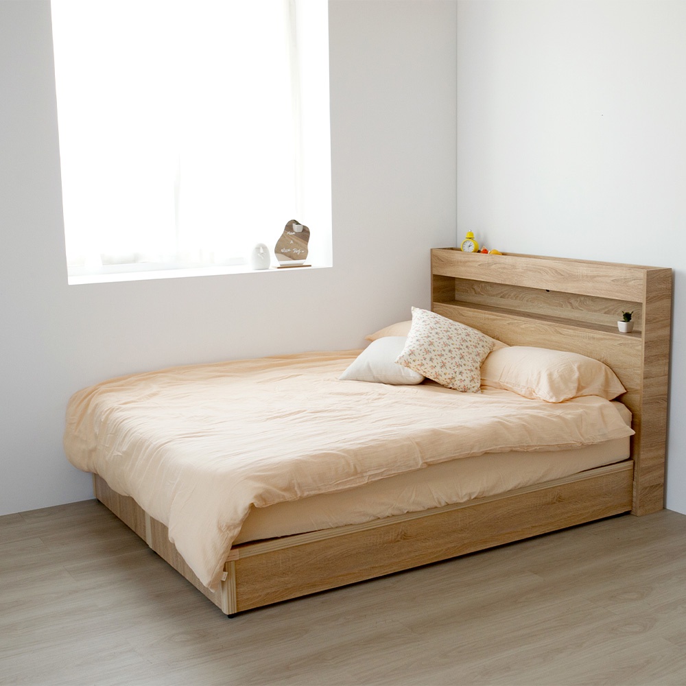 完美主義|Kim無印風雙人5尺床組(床頭+床箱) 床 床架 【R0225-A】白橡木|雪杉色|漂流木|梧桐色Bed Frames & HeadboardsPeachyLife完美主義