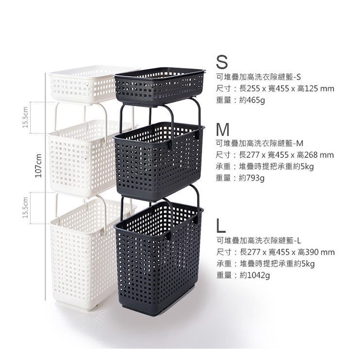【日本like-it】日製可堆疊加高洗衣隙縫籃-M白|深灰Laundry Bags & Basketsnicegoods 生活好東西