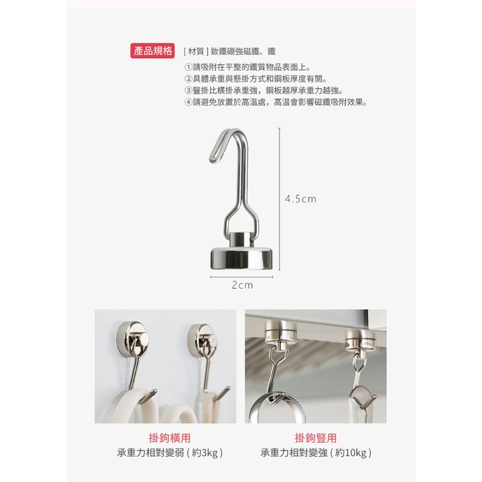 【日本霜山】金屬磁石掛勾(2入) 磁鐵掛勾 掛鉤 冰箱掛勾 不留痕掛勾 磁石掛勾 廚房掛鉤 免釘1.6cm (兩入)|(可旋轉強力2cm)兩入Hooksnicegoods 生活好東西
