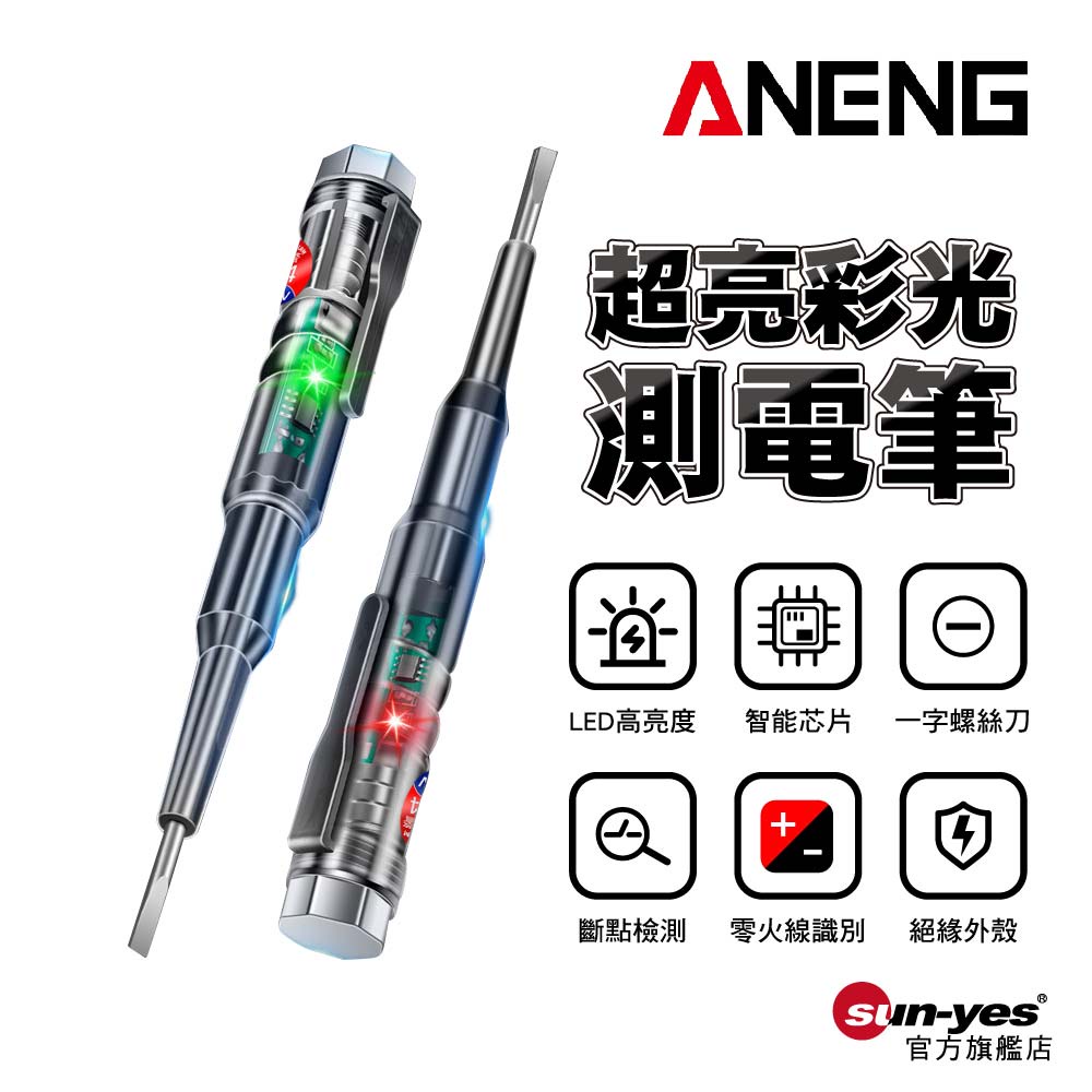 ANENG 超亮彩光測電筆|SY-B12B14|一字起子驗電筆/智能晶片試電筆/電工專用/測電壓/多功能測電筆LED雙燈測電筆(帶聲光警報)|LED雙燈測電筆ToolsSUNYES 官方旗艦店