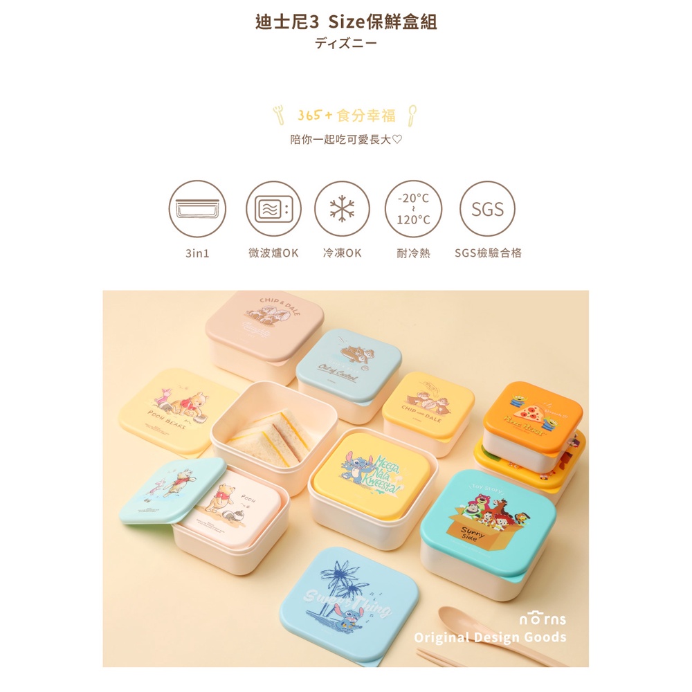 迪士尼3 Size保鮮盒組- Norns Original Design 史迪奇 奇奇蒂蒂 小熊維尼 玩具總動員 三眼怪奇奇蒂蒂|玩具總動員|史迪奇|小熊維尼Food StorageNorns