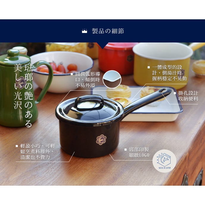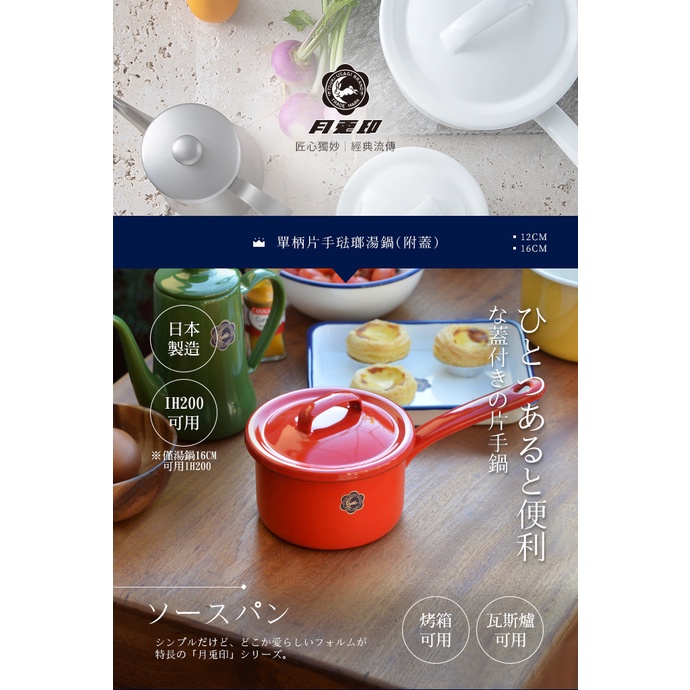 【日本月兔印】日製單柄片手琺瑯湯鍋(附蓋)-12cm-3色可選 原廠正品典雅白|熱情紅|時尚黑(特約代理限定色)Potsnicegoods 生活好東西