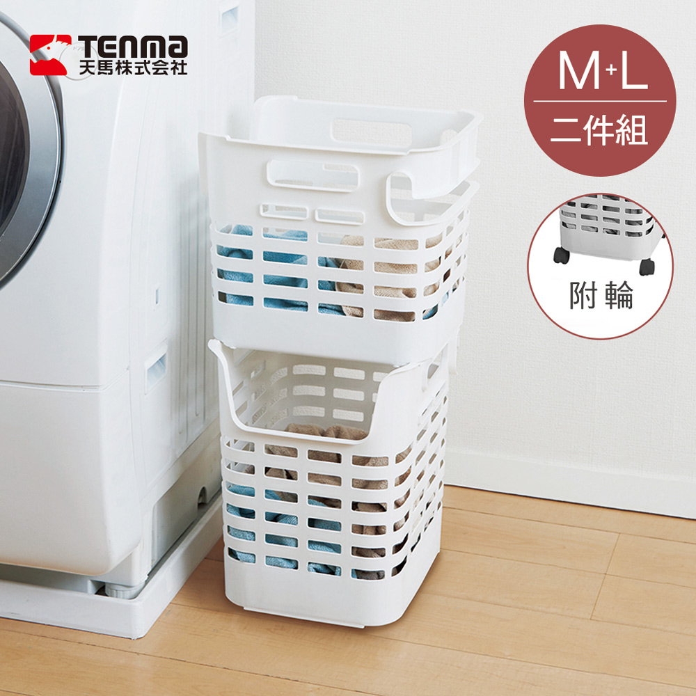 【日本天馬】PORISH 斜掛快取/層疊兩用洗衣籃2件組(附輪)-多色可選