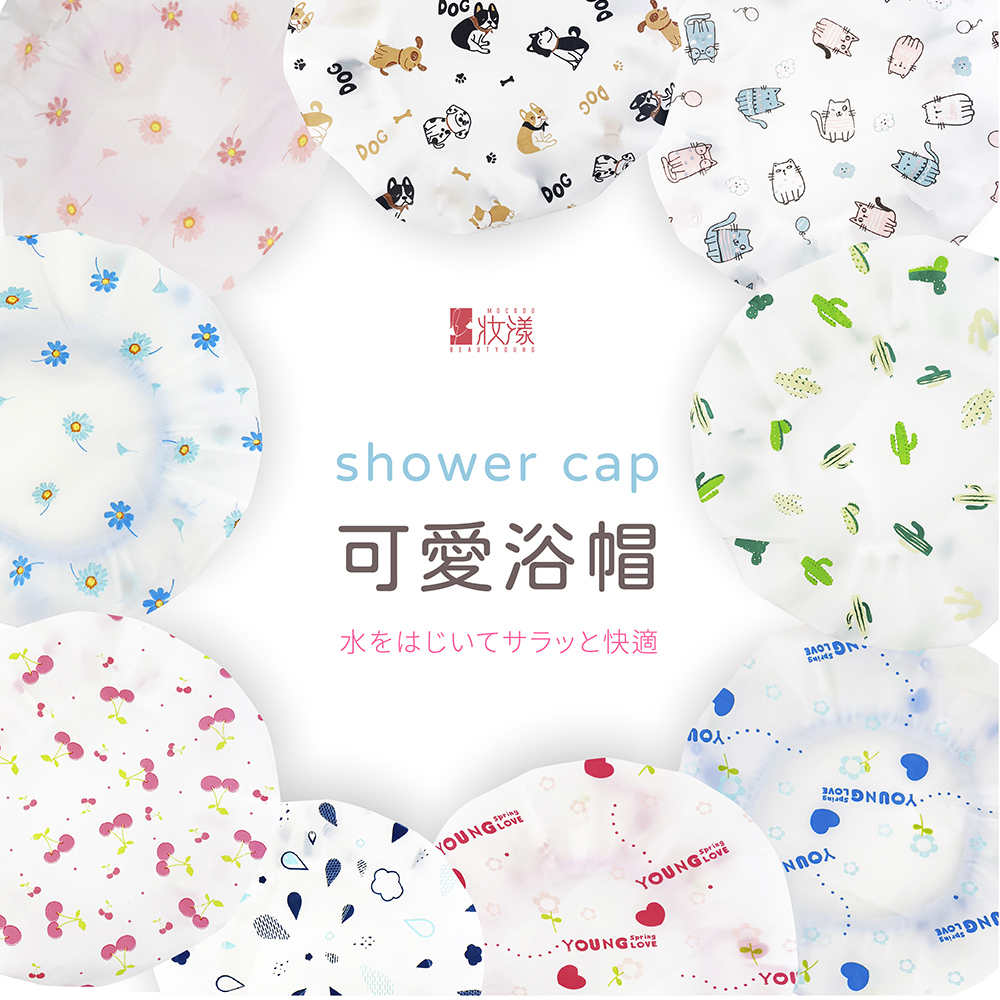 伴佳家 妝漾 花心浴帽 防水浴帽 鬆緊帶 頭髮 乾浴帽 洗澡用具 包頭巾 洗頭帽花心-粉|花心-藍|花妍-粉|狗狗|櫻桃|花妍-藍|貓貓|仙人掌|水滴-孩童Shower Capsmocodo 設計生活