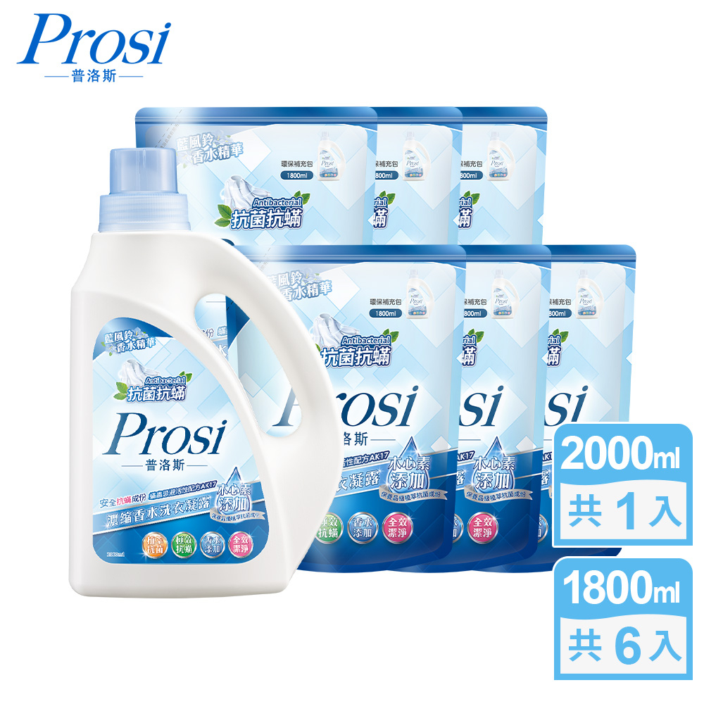 【Prosi普洛斯】抗菌抗蟎濃縮香水洗衣凝露-藍風鈴2000mlx1入+1800mlx6包
