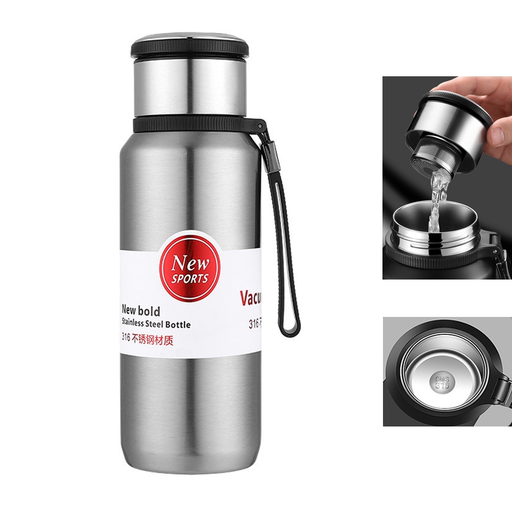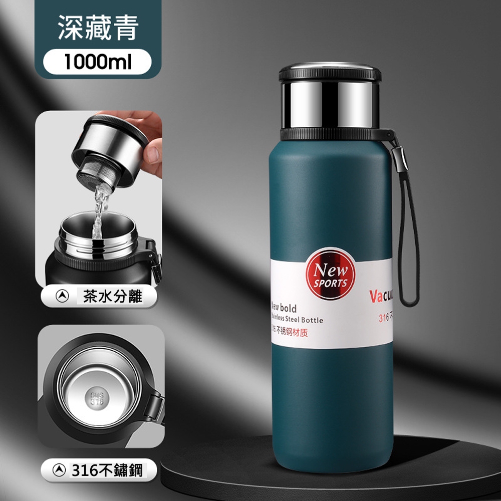 PUSH!戶外休閒用品316不銹鋼新款大容量保溫杯1000ML保冷杯帶茶倉水杯便攜水壺E184鋼本色1000ml|深藏青(藍色)1000ml|紅色1000ml|黑色1000mlWater Bottles & AccessoriesPUSH居家生活用品