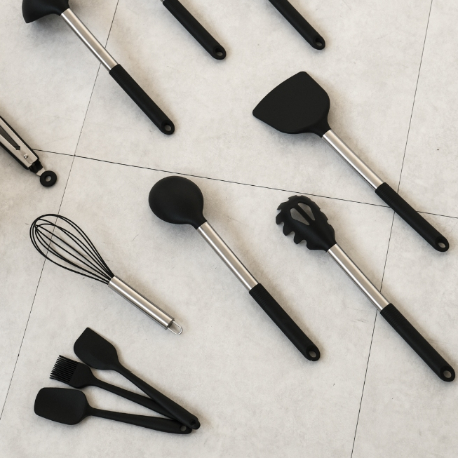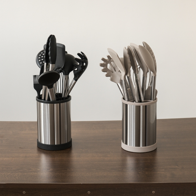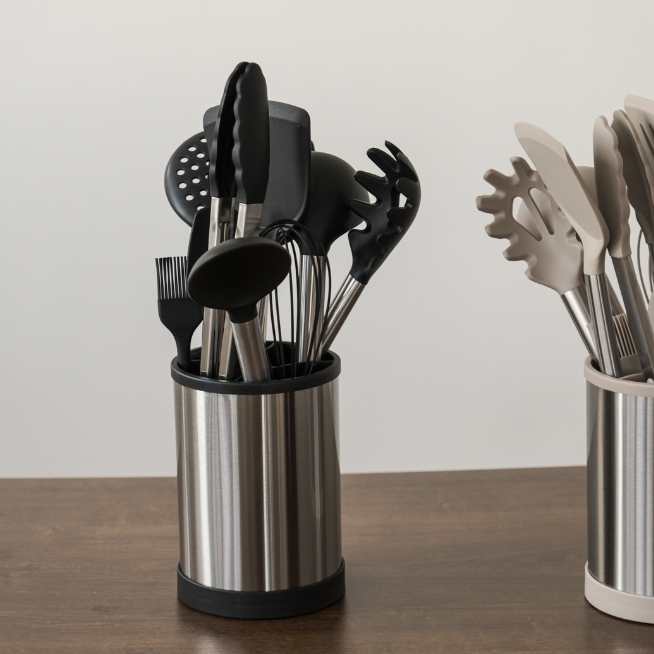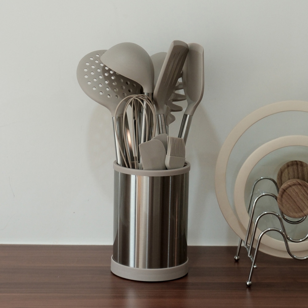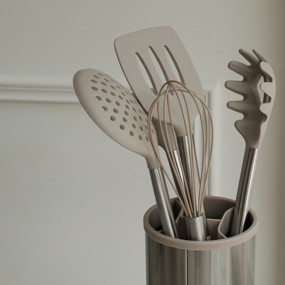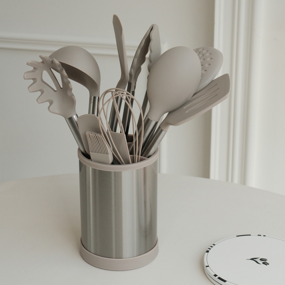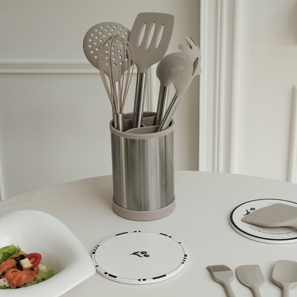 mooin kök 日日摩登12件套廚具 日日系列 廚具 廚具組 12件 摩登 旋轉收納桶 湯勺 炒菜鏟 漏鏟 攪拌鏟彩盒裝 – 卡其|彩盒裝 – 黑Spatulas & Cooking Tweezersmooin 居家生活選品