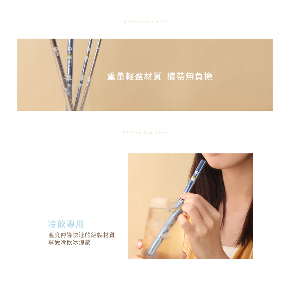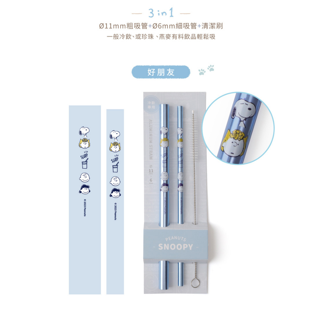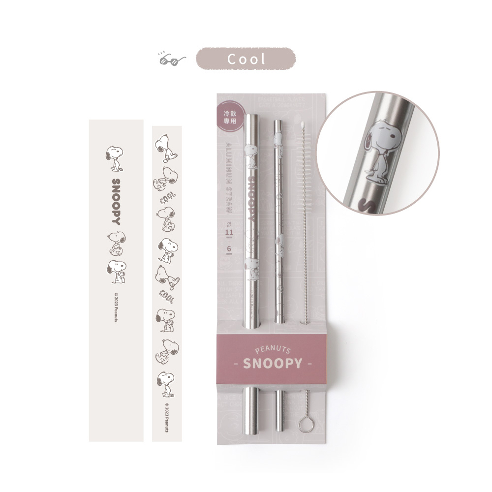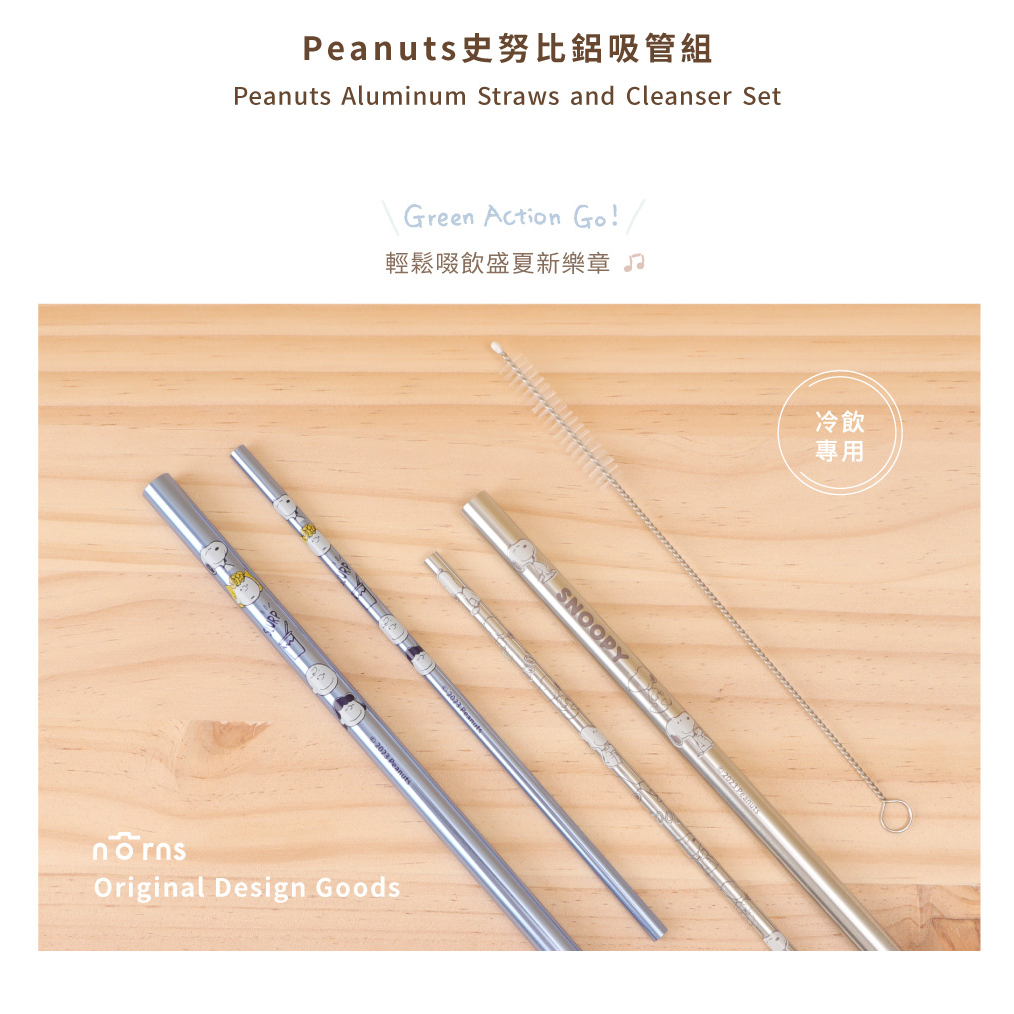 Peanuts史努比鋁吸管組 冷飲專用-Norns Original Design Snoopy環保吸管三入組 附清潔刷好朋友|CoolStrawsNorns