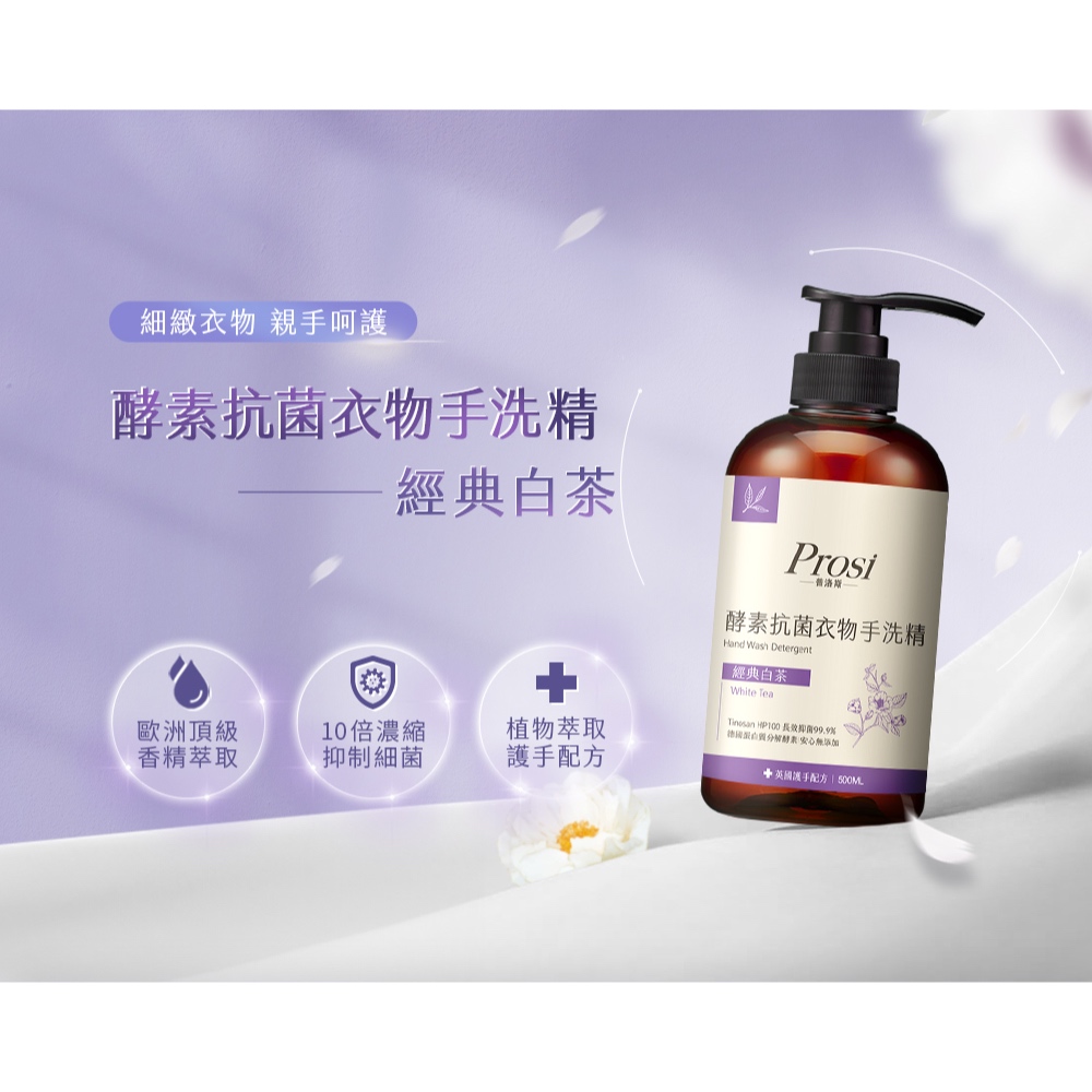 【Prosi普洛斯】酵素抗菌衣物手洗精500ml-經典白茶(貼身衣物/細緻衣物/瑜珈服/吸溼排汗衣/護手配方)酵素抗菌手洗精500mlx2入|酵素抗菌手洗精500mlx4入|酵素抗菌手洗精500mlx1入Laundry CareProsi普洛斯官方直營店_普洛斯Prosi/御衣坊Akira