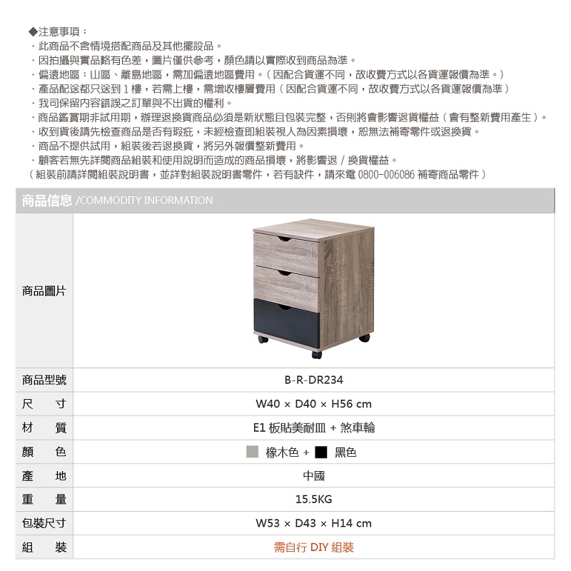 RICHOME DR234 北歐風E1板三抽櫃(美背) 床頭櫃 收納櫃 置物櫃 櫥櫃 三抽櫃 斗櫃橡木色 + 黑色Cupboards & CabinetsRICHOME 生活家居