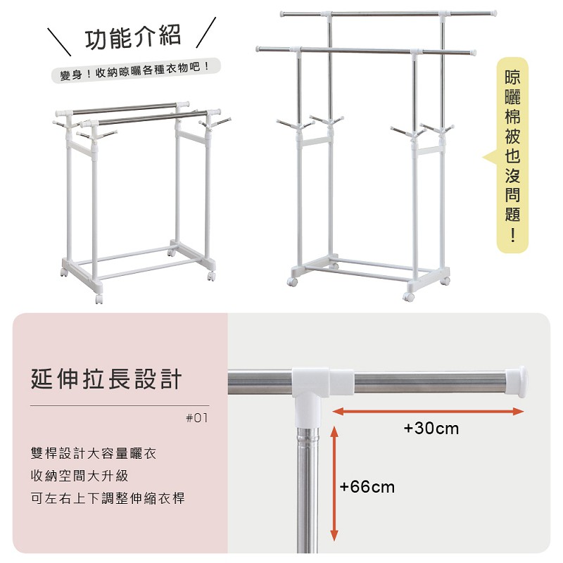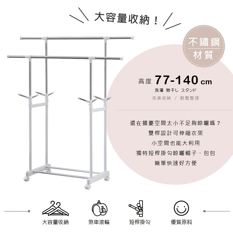 RICHOME HA007 小蝸牛伸縮衣架(雙桿)(不鏽鋼) 衣架 雙桿 掛衣架 曬衣架 晾衣架白色Clotheslines & Drying RacksRICHOME 生活家居