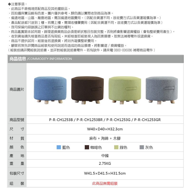 RICHOME CH1253 胖胖大圓凳(直徑40CM)(提把設計)-4色 圓凳 椅凳 沙發凳 腳凳藍色|咖啡色|綠色|灰色Benches, Chairs & StoolsRICHOME 生活家居