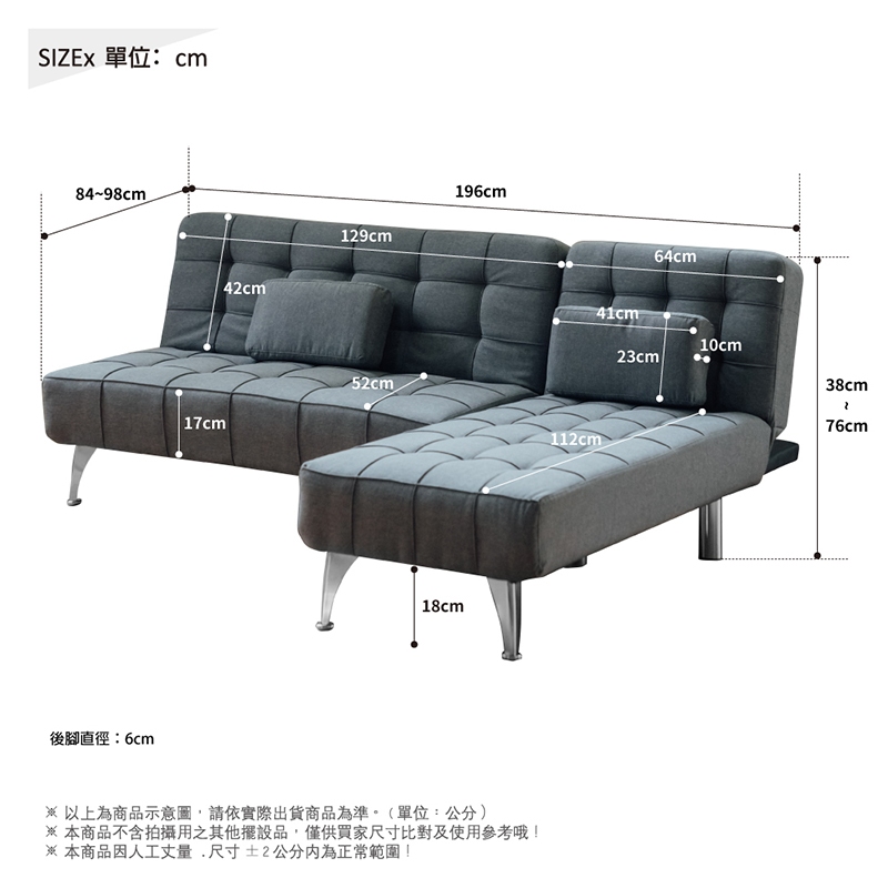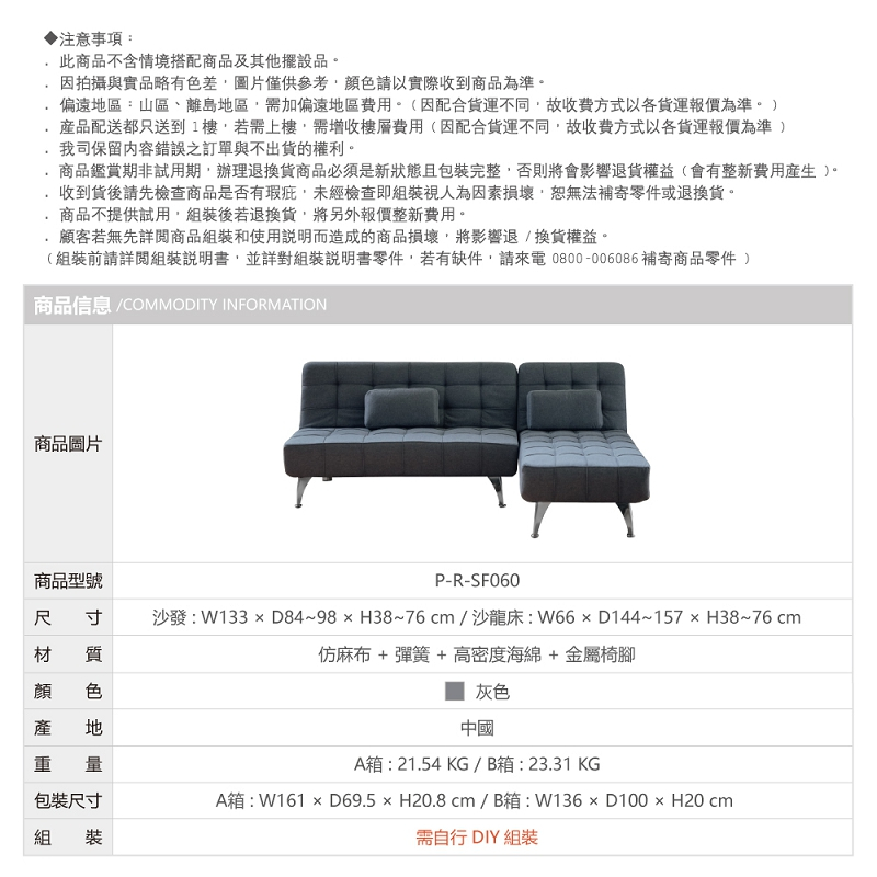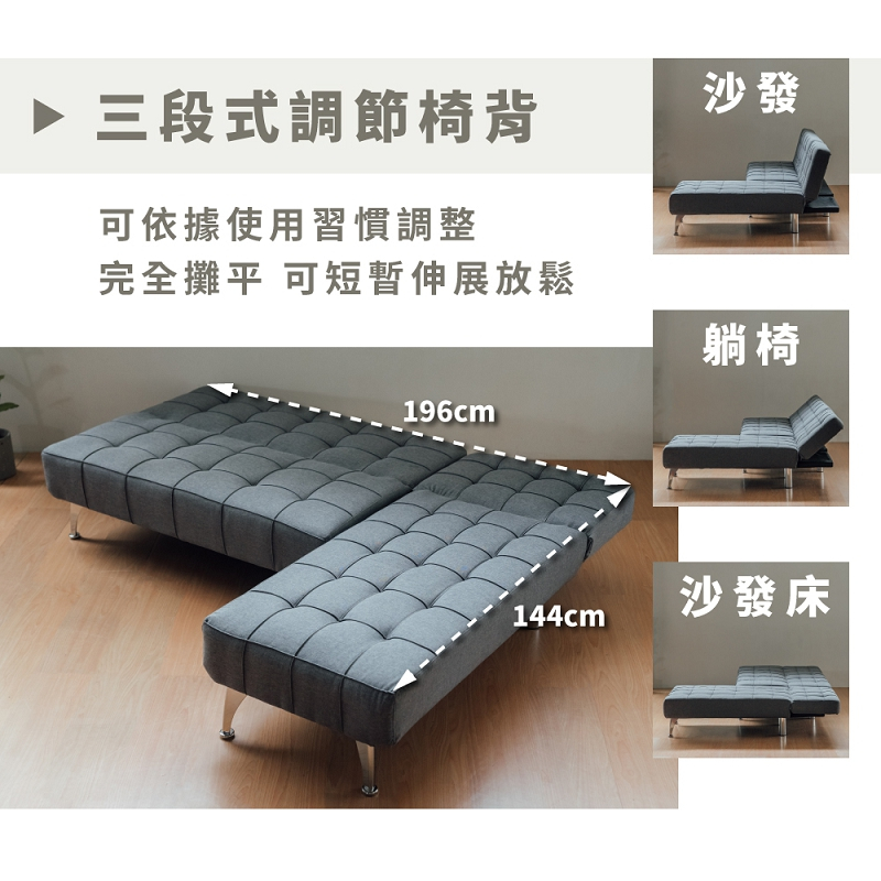 RICHOME 酷比L型沙發床 沙發 沙發床 雙人沙發 三人沙發 雙人床 SF060灰色SofasRICHOME 生活家居