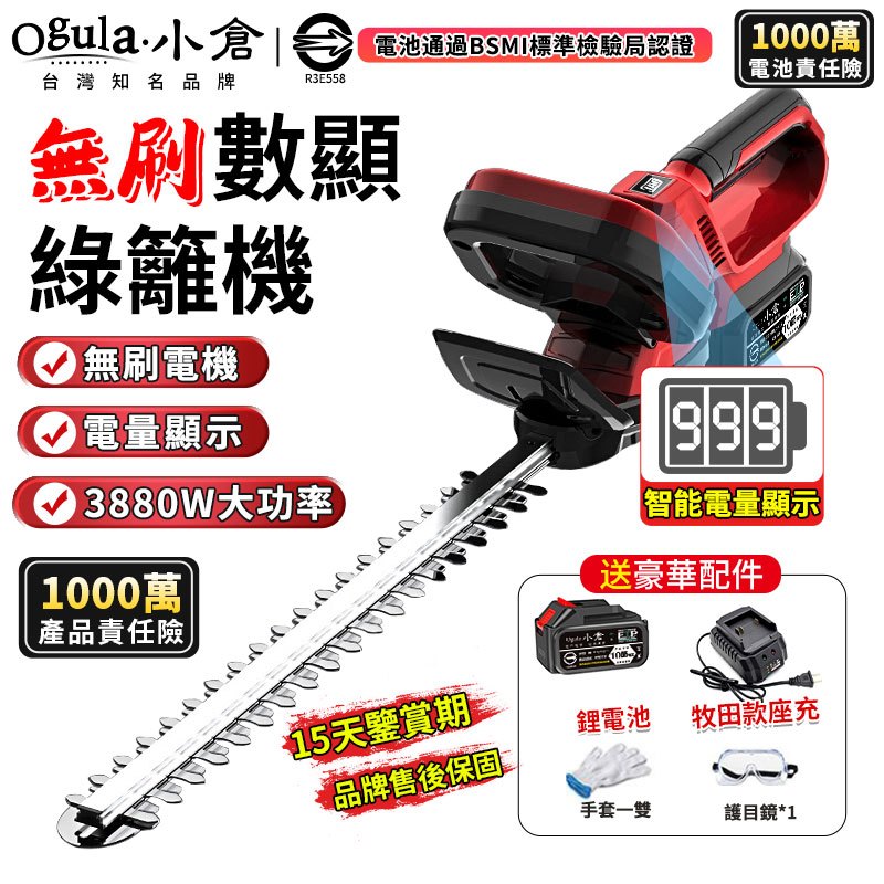 【Ogula小倉】籬笆機 無刷綠籬機 電動修剪機【帶電量顯示】圍籬剪 多功能園林樹木修剪機【10倍蝦幣回饋】無刷至尊款綠籬機【五節兩電】電量顯示|無刷至尊款綠籬機【十節兩電】電量顯示|無刷至尊款綠籬機【空機】電量顯示|無刷至尊款綠籬機【五節一電】電量顯示|無刷至尊款綠籬機【十節一電】電量顯示|BSMI認證合格電池-十五節電芯*1Gardening ToolsOgula小倉【官方旗艦店】