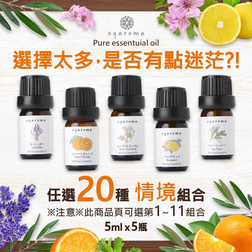 【ogaroma】芳療師嚴選20種情境組合 第1~11情境組合 5瓶5ml 限時超值組 適合初學者 天然精油 交換禮物①人氣No.1組合|②人氣No.2組合|③女性組合|④木質系組合|⑤柑橘系組合|⑥香料系組合|⑦驅蟲對策組合|⑧休息組合|⑨集中組合|⑩振奮組合|⑪冷靜組合Essential Oilsogaland日本生活選品