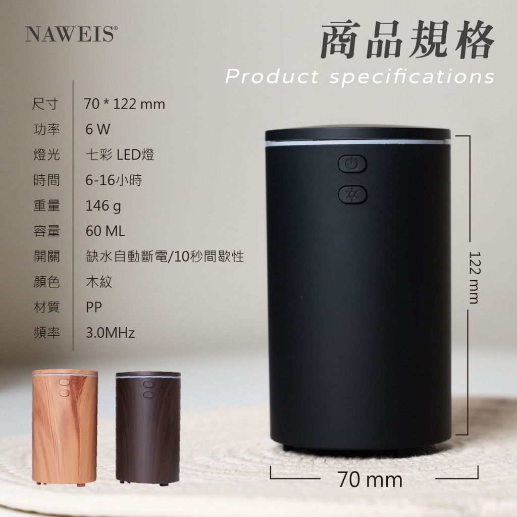 精緻輕巧車用 USB水氧機 香氛機 香薰機 加濕器 超音波負離子香氛機 車用擴香 家用芳香 薰香 薰香機 擴香暖光單機|七彩單機|新款深木紋單機|新款淺木紋單機|新款黑色單機Diffusers, Humidifiers & Oil BurnersNaweis納唯詩精油