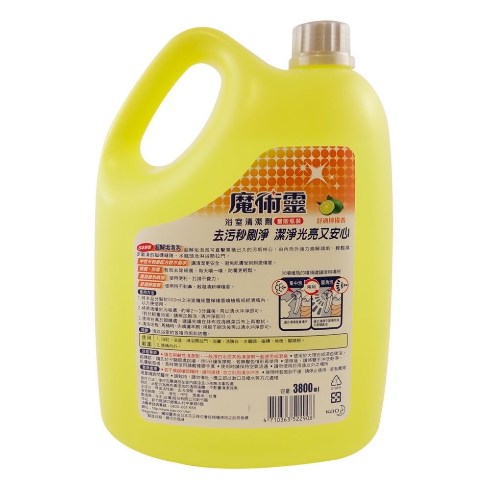魔術靈 浴室清潔劑桶裝 【超取限1】浴廁清潔劑 高濃縮清潔污垢 浴室專用清潔劑 檸檬香 3800ml,桶魔術靈 浴室清潔劑桶裝 【超取限1】浴廁清潔劑 高濃縮清潔污垢 浴室專用清潔劑 檸檬香 3800ml,桶Cleaning AgentsOfficepro總務倉庫 旗艦店