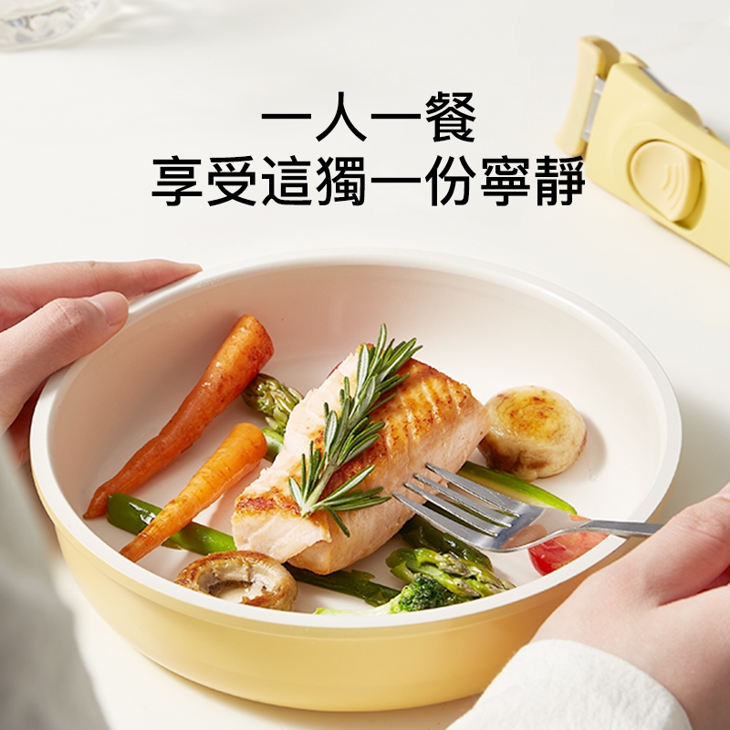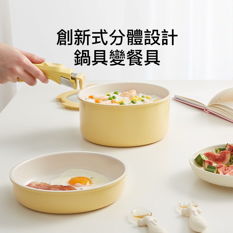紅廚Redchef 陶瓷岩不沾鍋具輔食鍋4件組黃色 可拆式手柄+18CM平底鍋+18CM奶鍋 IH電磁爐適用