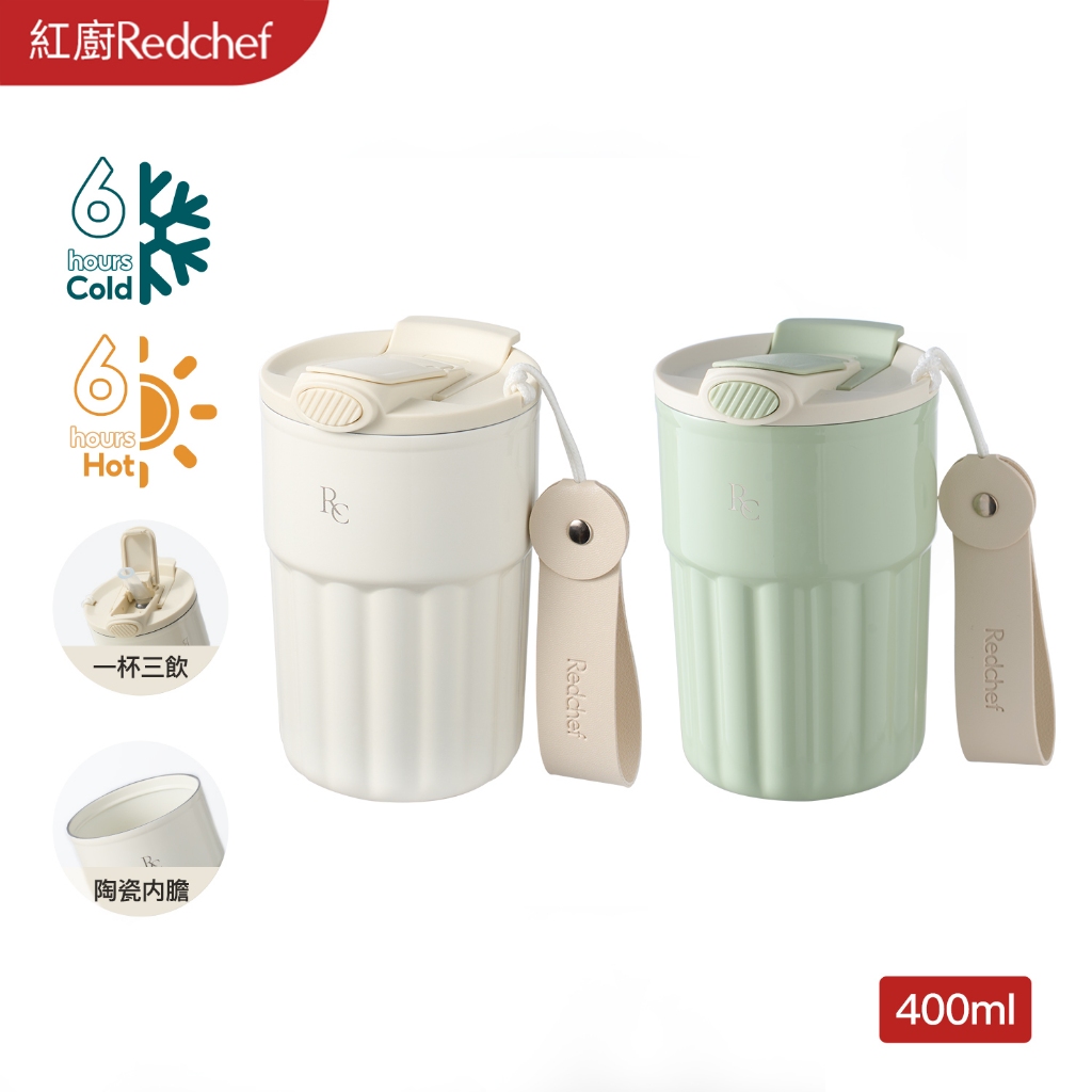 紅廚Redchef 雙層陶瓷咖啡杯 400ml/14oz 保溫杯 一杯三飲 防漏長效保溫鎖冷 附嬰兒食品級矽膠吸管白色-400ml|綠色-400mlWater Bottles & AccessoriesRedchef