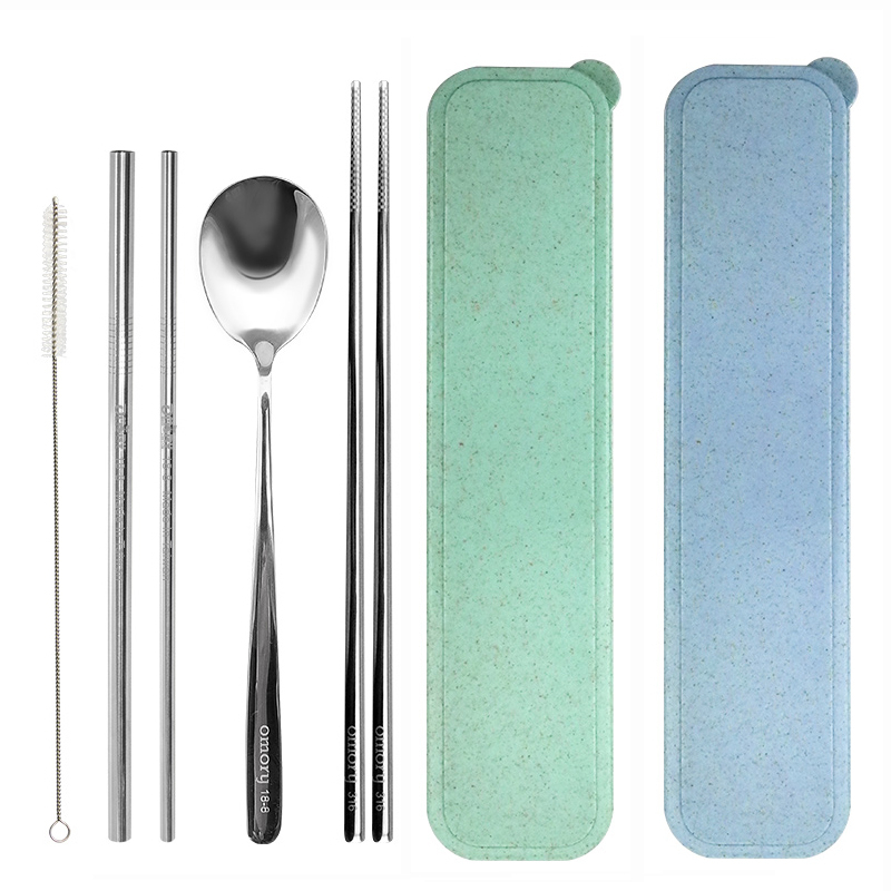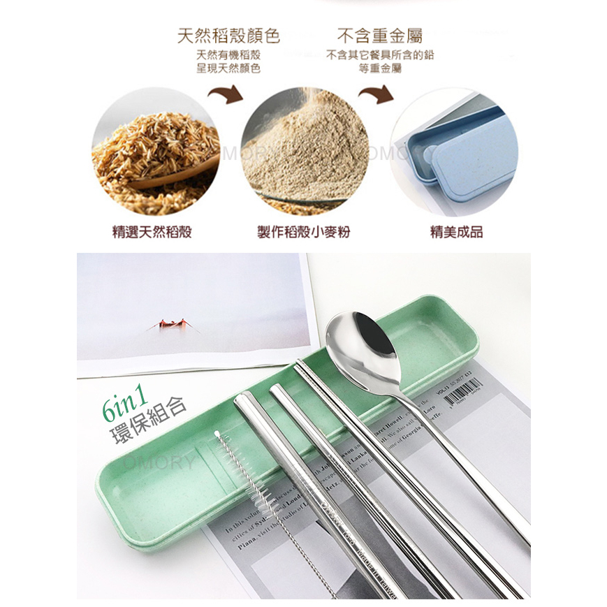 【OMORY】六合一餐具吸管組藍色|綠色CutleriesOMORY 樂活美學館