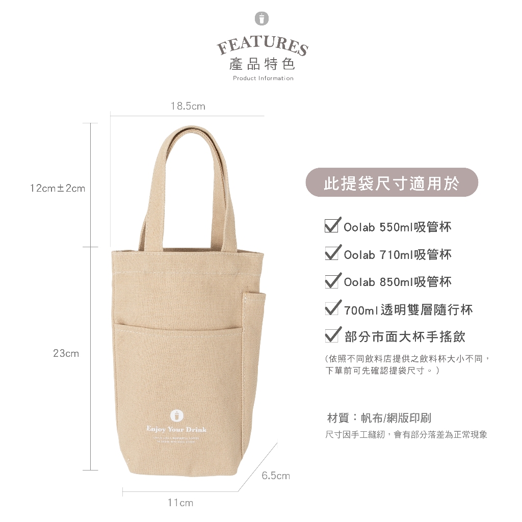 品牌多功能帆布提袋 【六色】 可適用於oolab吸管杯粉色|卡其|紫色OthersOolab 良杯製所