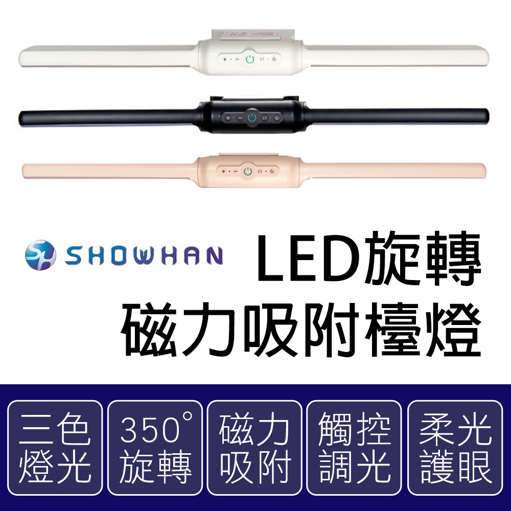 【SHOWHAN】USB可充電 雙頭設計 LED旋轉磁力吸附檯燈 3種色溫/宿舍燈/化妝燈/床頭燈/應急燈 應急照明黑色|白色|粉色SHOWHAN手機周邊生活用品旗艦店