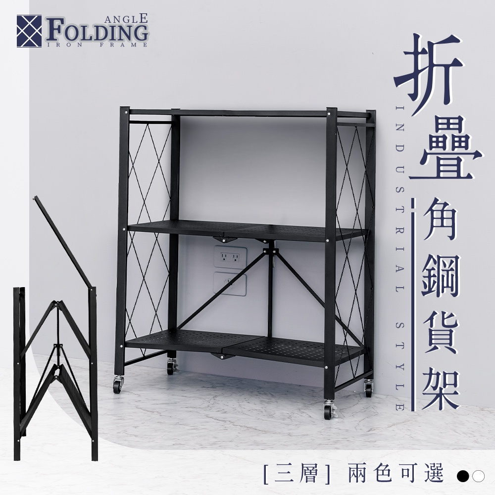 比架王 三層折疊角鋼貨架(兩色可選) 免螺絲 角鐵 耐重置物架 工業風層架 收納櫃 陳列架 鐵架 好收納 折疊 附滑輪黑色|白色Shelves & RacksParity 比架王居家生活館