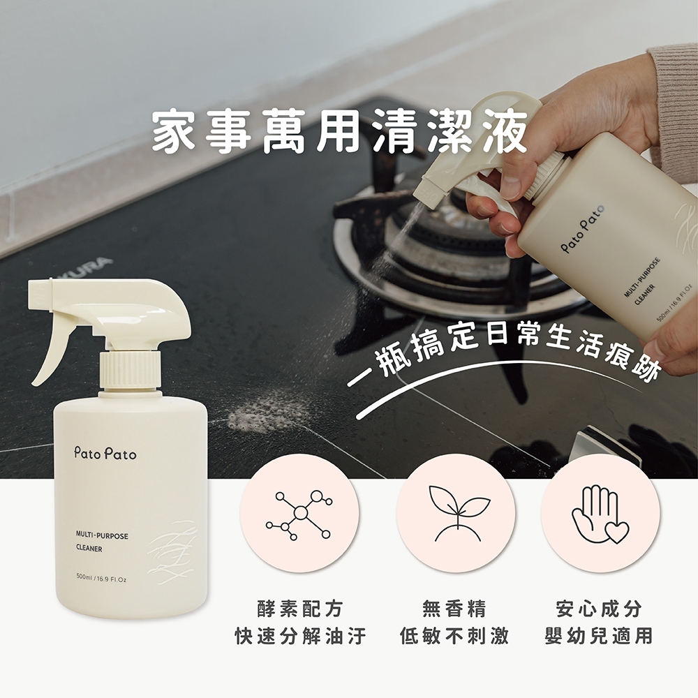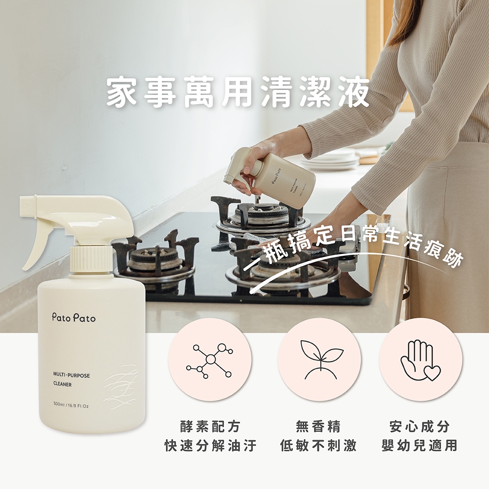 【Pato Pato】家事萬用清潔液500ml|油汙救星|天然酵素配方|SGS驗證|歐盟環保標升級版家事萬用清潔液500ml|升級版-家事500ml+30mlCleaning AgentsPato Pato 官方旗艦館 / 巧拼地墊 / 酵素清潔液 / 台灣製造