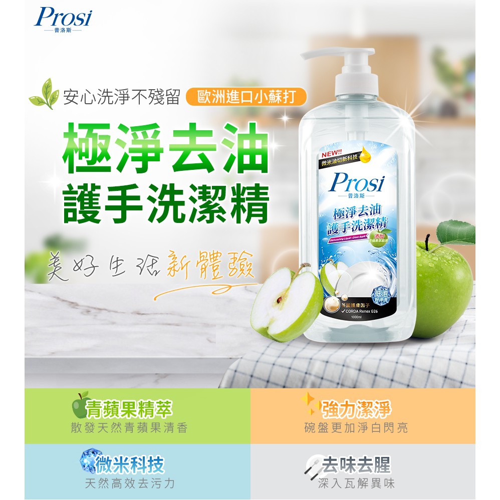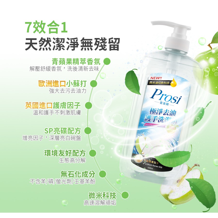 【Prosi普洛斯】極淨去油護手洗潔精1000ml-綠茶清香/青蘋果芬芳 (洗碗精 廚房清潔 碗盤清潔 護手 去油)青蘋果芬芳6入|綠茶清香6入|綠茶清香12入|青蘋果芬芳12入|綠茶清香3入|青蘋果芬芳3入Cleaning AgentsProsi普洛斯官方直營店_普洛斯Prosi/御衣坊Akira