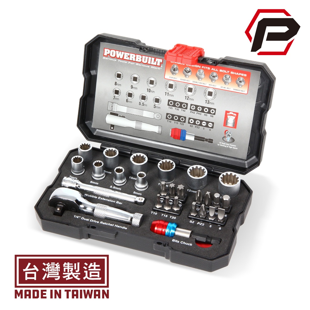 【寶力優工具】Powerbuilt 28件式雙頭迷你棘輪萬用套筒組 兩分/起子短板棘輪板手 兩分套筒起子工具組 台灣製造