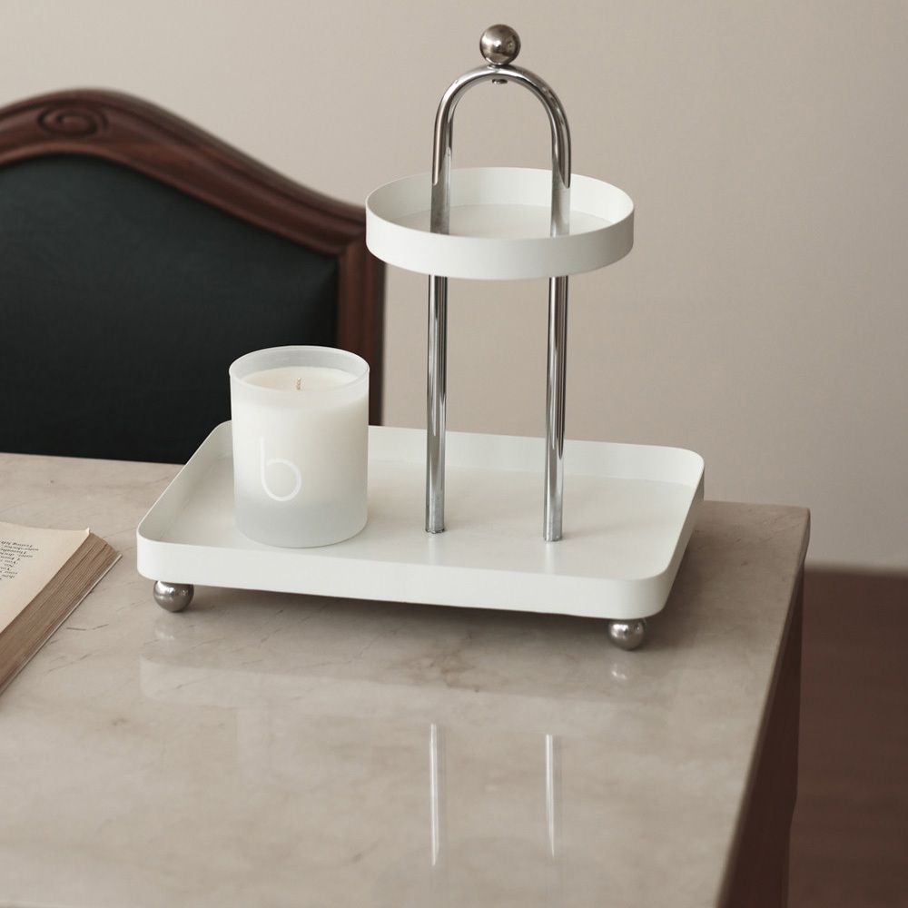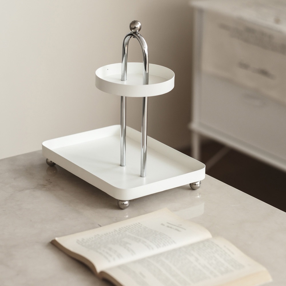 mooin höndla 現代極簡不鏽鋼雙層托盤 居家生活 居家裝飾 托盤 飾品托盤 餐具托盤 拍照道具白Platesmooin 居家生活選品