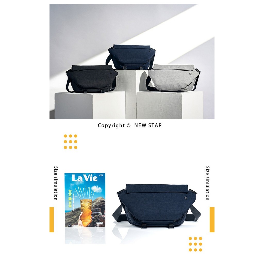 NEW STAR 斜背包 簡約防潑水雙層機能磁吸側背包包 郵差包 男 女 男包 BL180黑色|藍色|灰色NEW STAR 包包