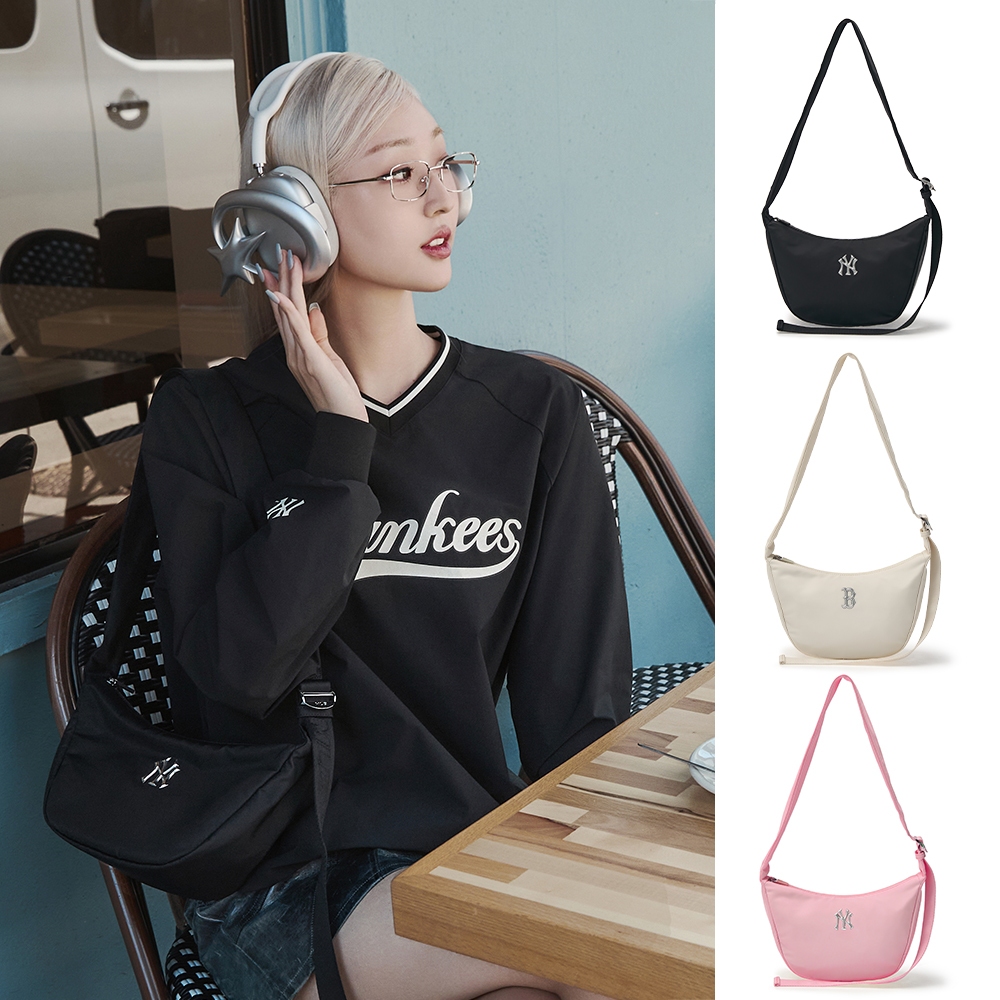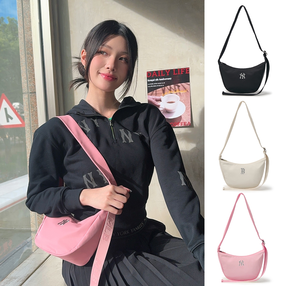 MLB 尼龍斜背包 半月腋下包 洋基/紅襪隊 (3ACRM044N-三款任選)【官方旗艦店】NY洋基隊_粉,F|B紅襪隊_米白,F|NY洋基隊_黑,FMLB KOREA 官方旗艦店