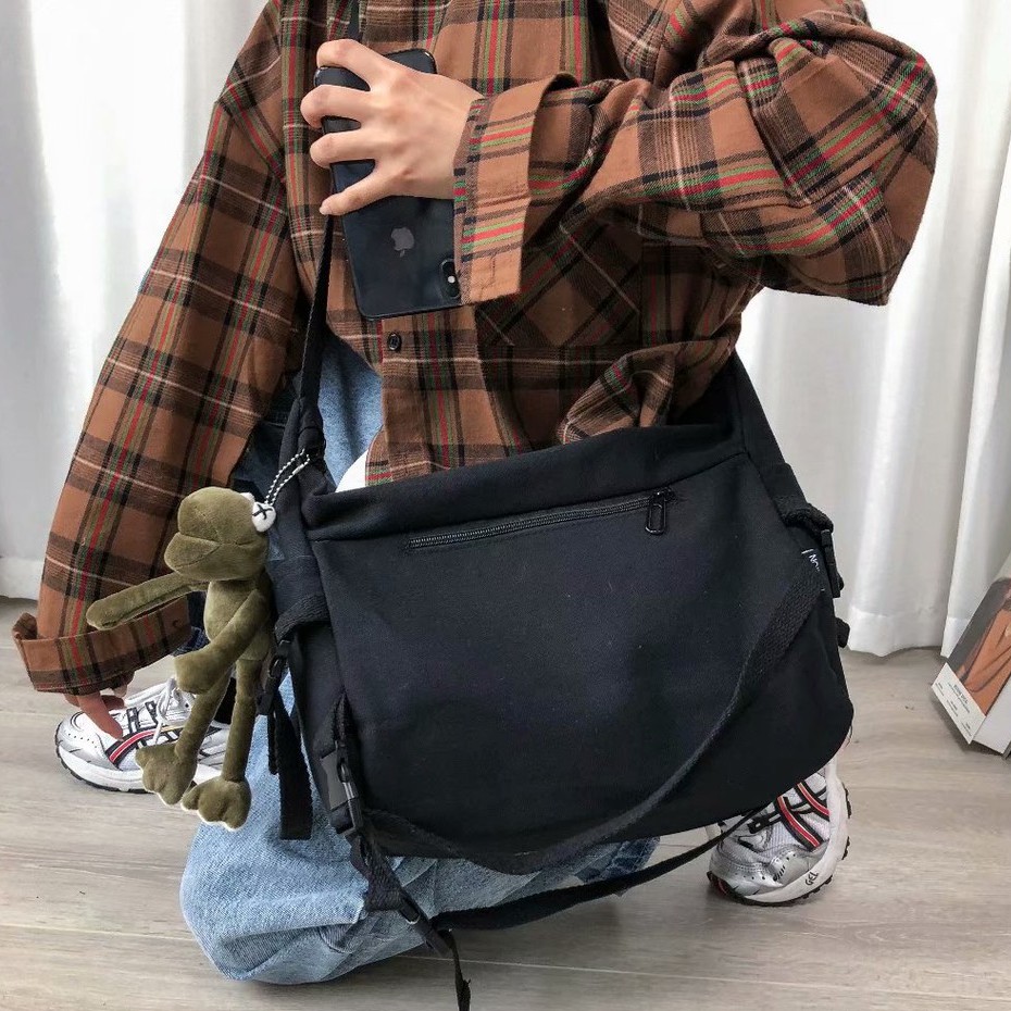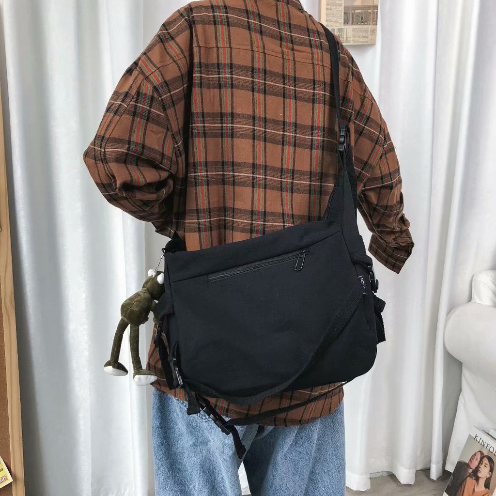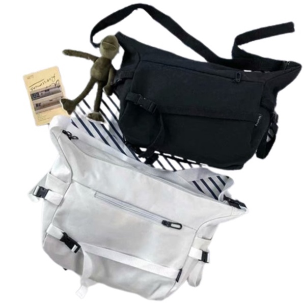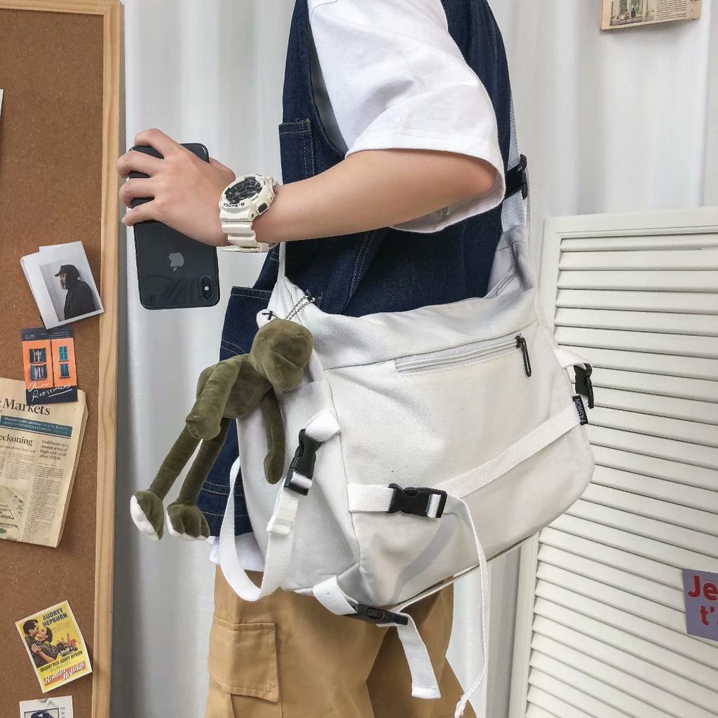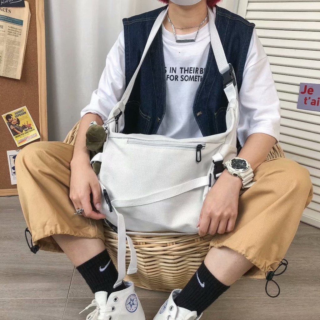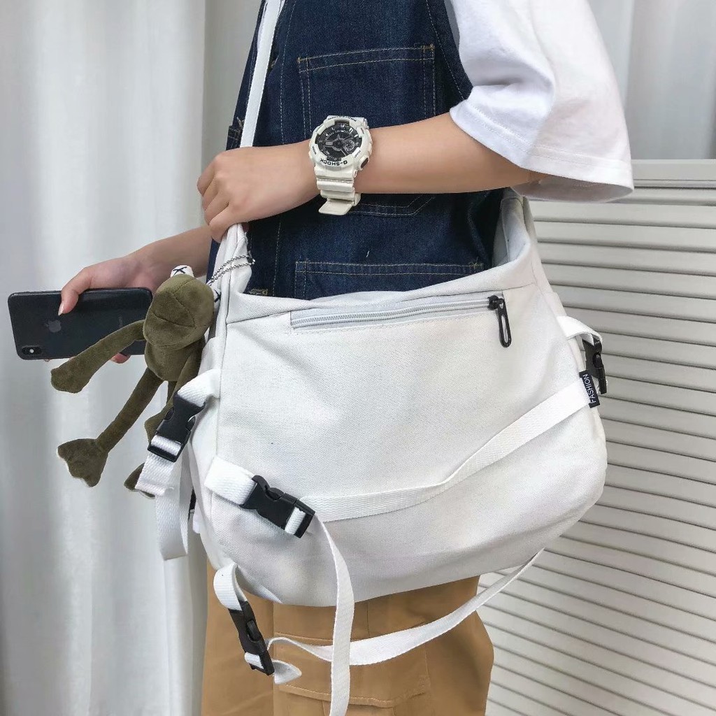 【M世代】韓版原宿風機能工裝帆布包 大容量單肩包 男女斜挎包(WWB14)黑色,F|白色,FM世代官方