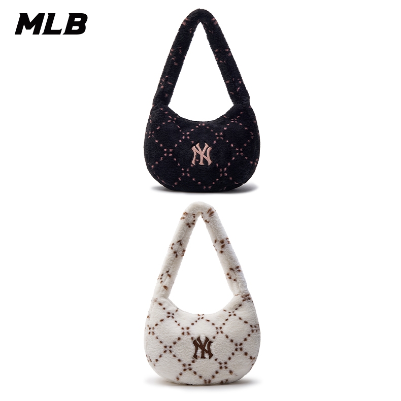 MLB 絨毛腋下包 手提包 肩背包 MONOGRAM系列 紐約洋基隊 (3ABQM0836-兩款任選)NY洋基隊_白,F|NY洋基隊_黑,FMLB KOREA 官方旗艦店