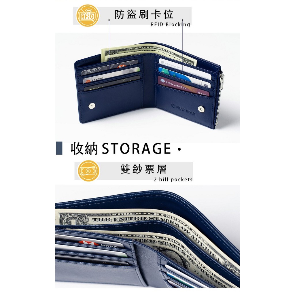NEW STAR 短夾 超纖皮革RFID防盜輕薄橫式短夾 零錢 男 女 男皮夾 情人節 禮物 CA187曜石黑|湛海藍|沙漠灰|冷杉綠Bifold & Trifold WalletsNEW STAR 包包