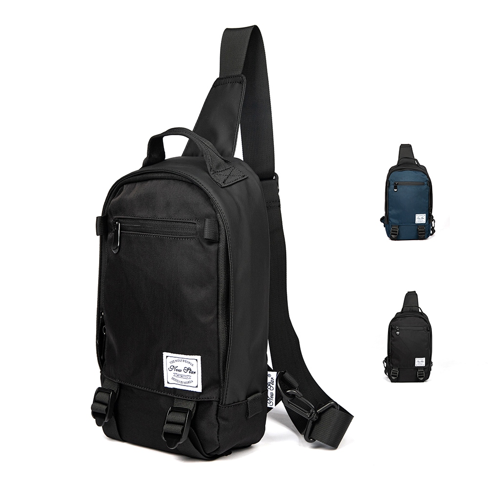 NEW STAR 肩背包 簡約防水拼接撞色胸包包 斜背包 男 女 男包 BK282黑色|藍色NEW STAR 包包