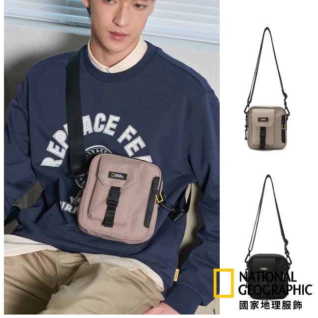 【國家地理服飾】個性方塊斜背包-黑色/米色米色|黑色(新進貨)National Geographic國家地理服飾官方旗艦店