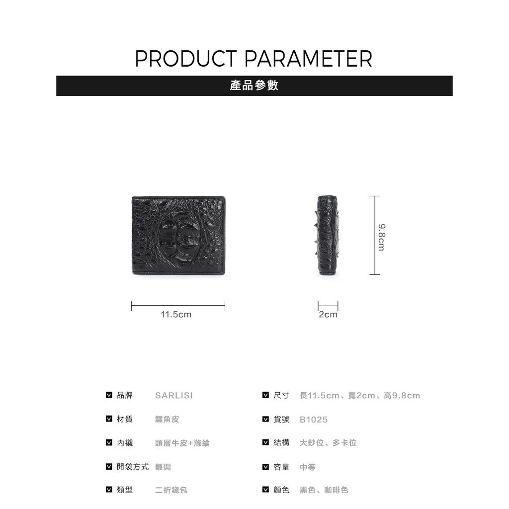 【台灣出貨】【Sarlisi 】夏麗絲新款泰國男士鱷魚皮真皮短款錢包多卡位正品皮夾超薄短夾黑色頭骨|咖啡色頭骨|黑色背骨|咖啡色背骨Bifold & Trifold WalletsSarlisi 夏麗絲|泰國珍稀皮革皮具商