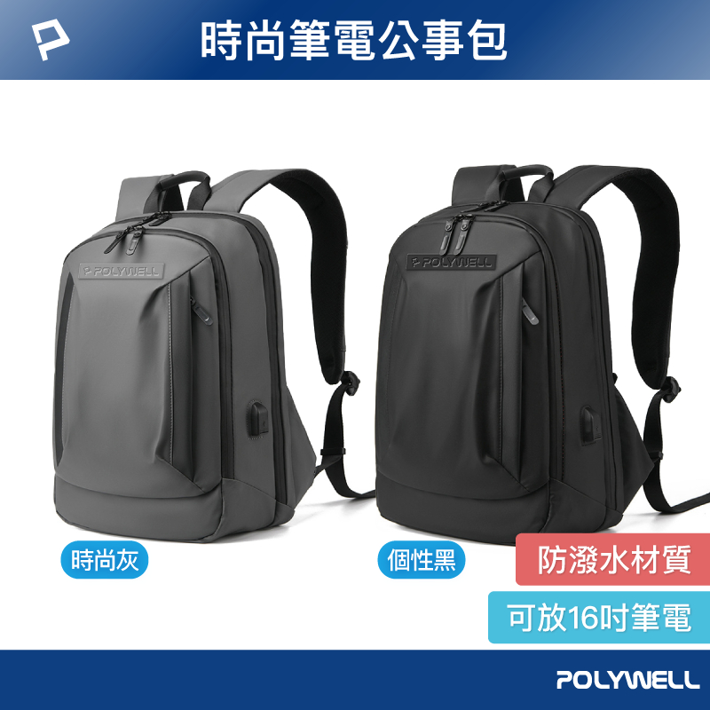 POLYWELL 時尚筆電公事包 後背包 電腦包 防水材質 透氣背墊 大容量 可容納16吋筆電 寶利威爾 台灣現貨黑色|灰色Laptop BackpacksPOLYWELL寶利威爾官方旗艦店