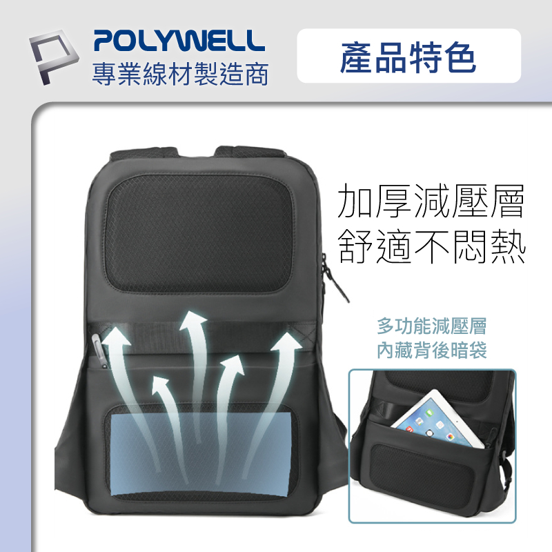 POLYWELL 時尚筆電公事包 後背包 電腦包 防水材質 透氣背墊 大容量 可容納16吋筆電 寶利威爾 台灣現貨