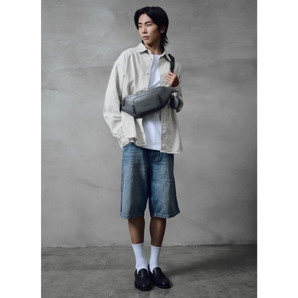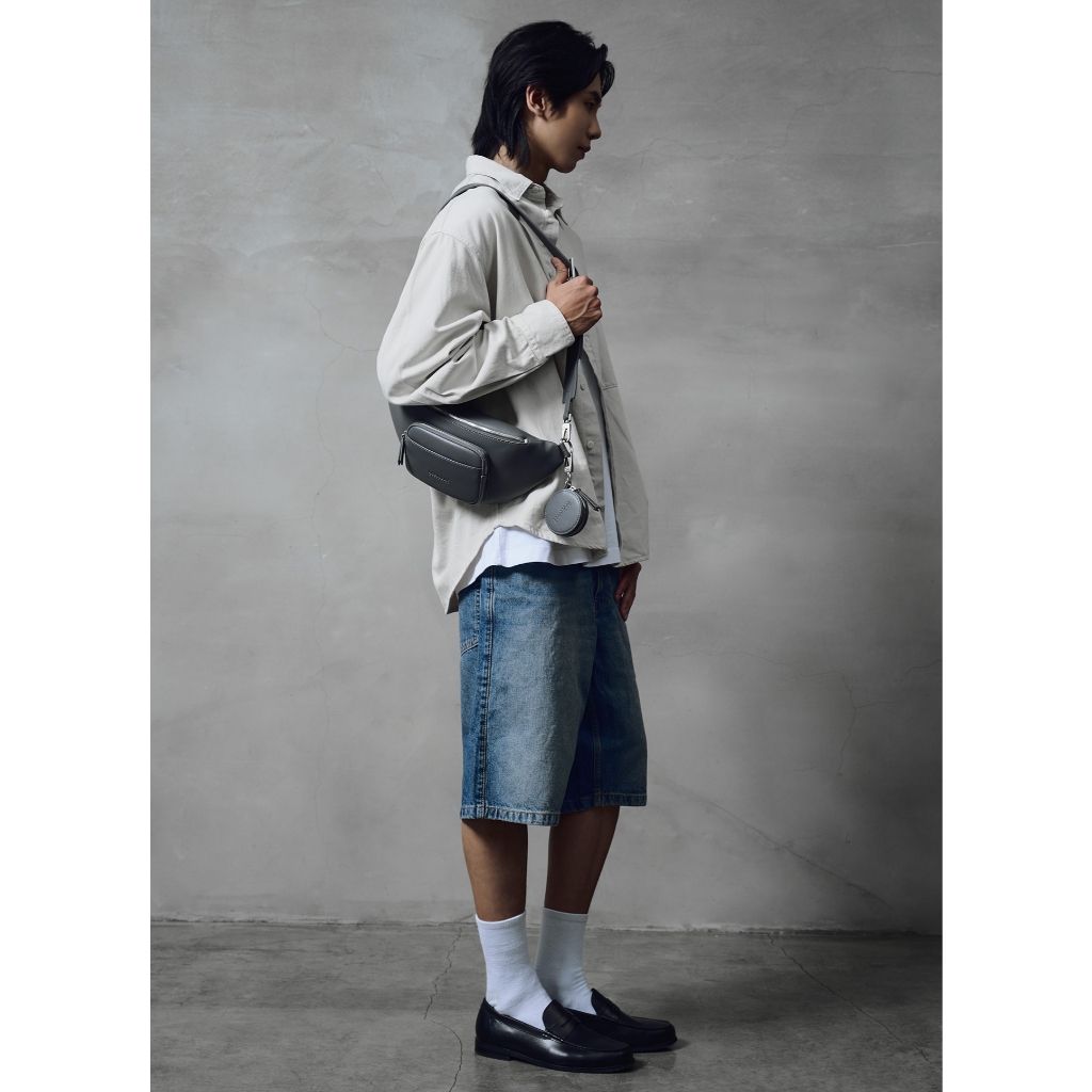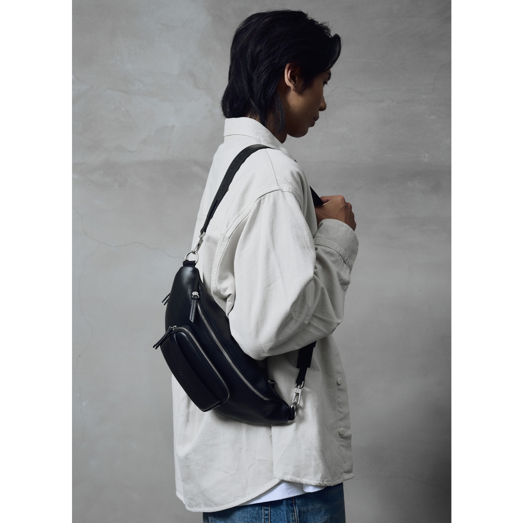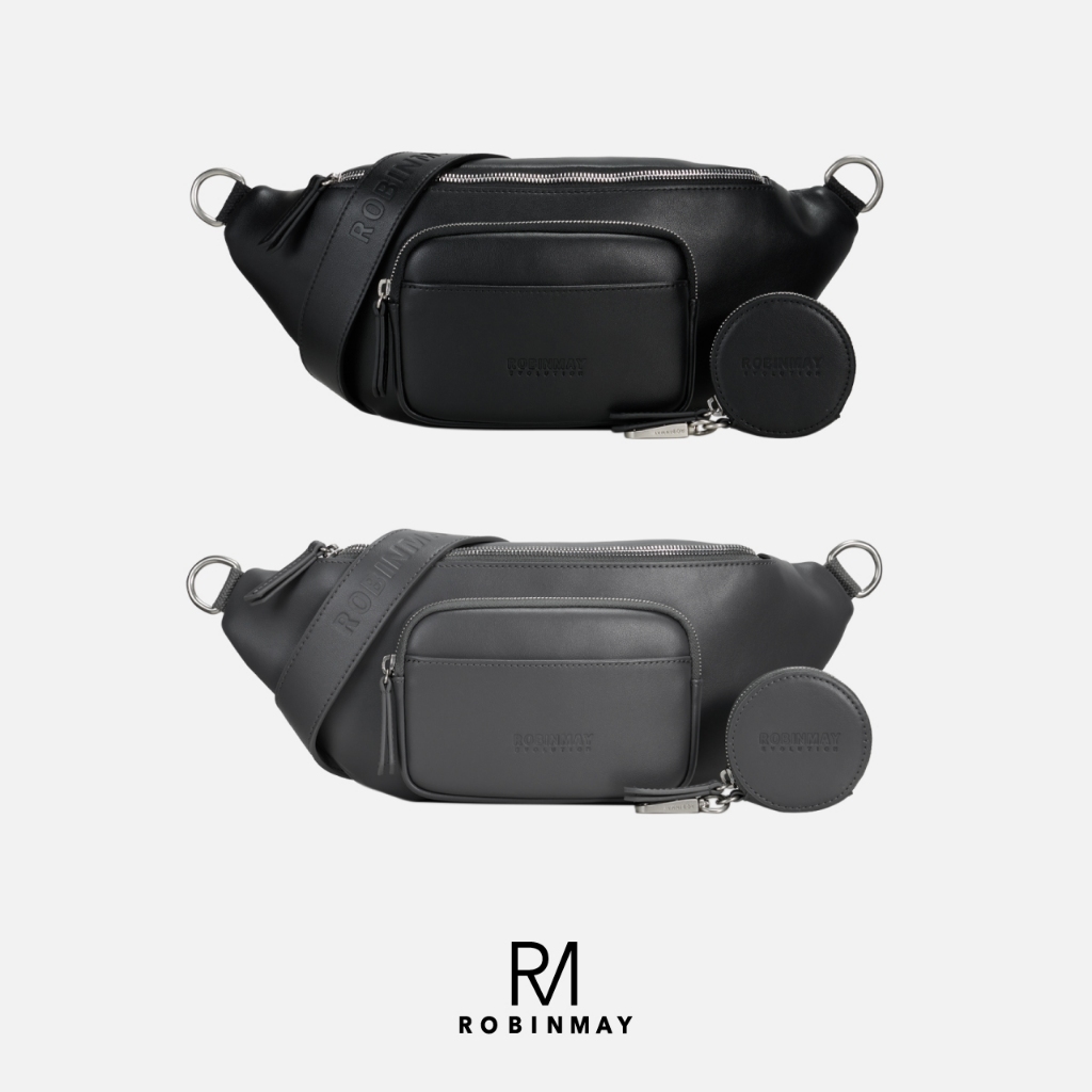 【ROBINMAY】維特真皮胸包黑色|深灰ROBINMAY 官方旗艦店